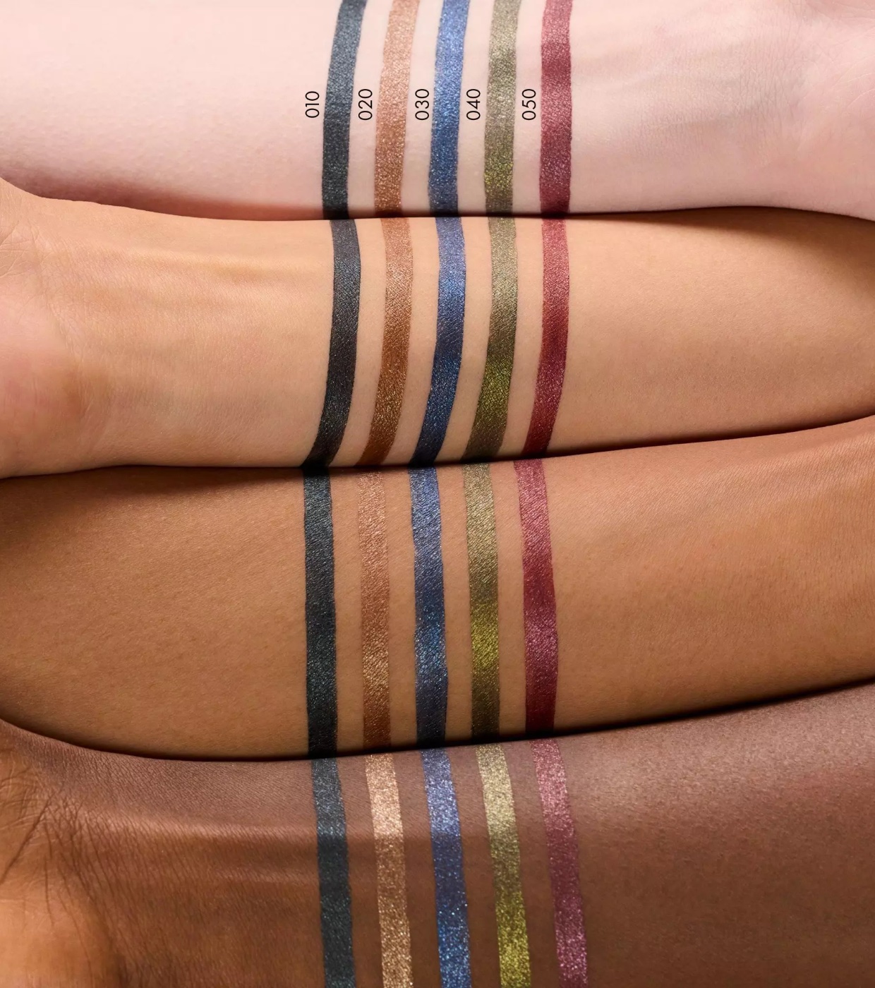 Este delineador versátil faz com que seus olhos brilhem com um efeito metálico fascinante e uma textura cintilante, como pequenas joias.