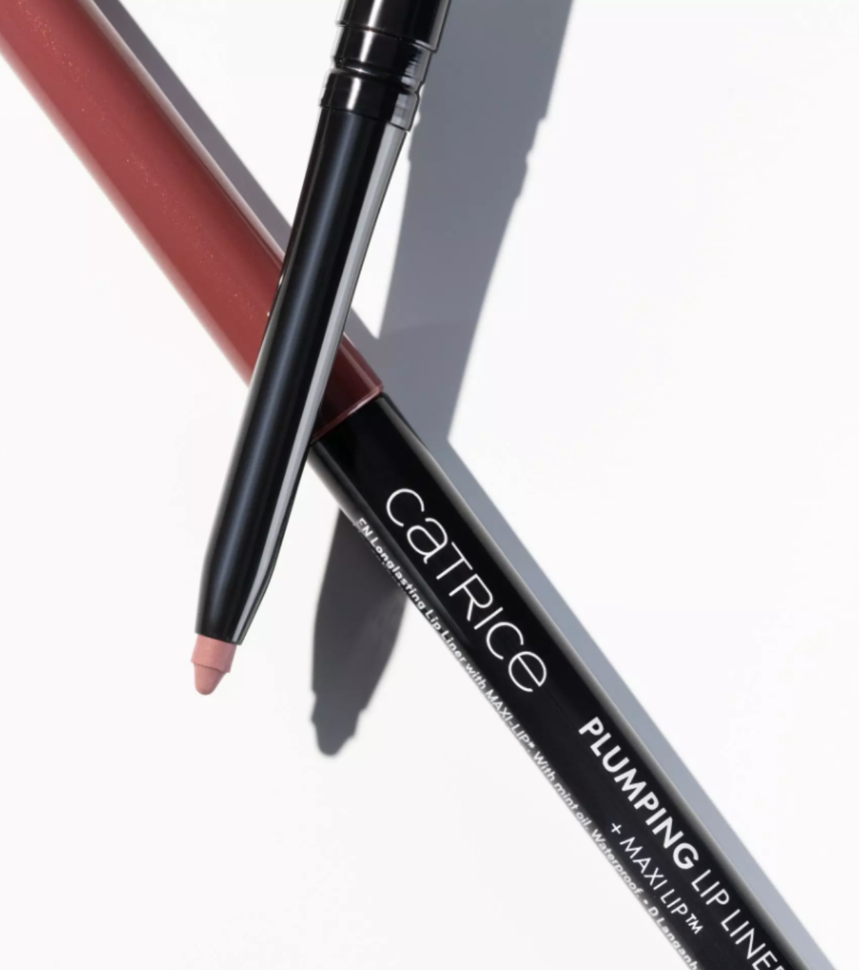 Lápis labial volumizador da Catrice, com acabamento acetinado matte.