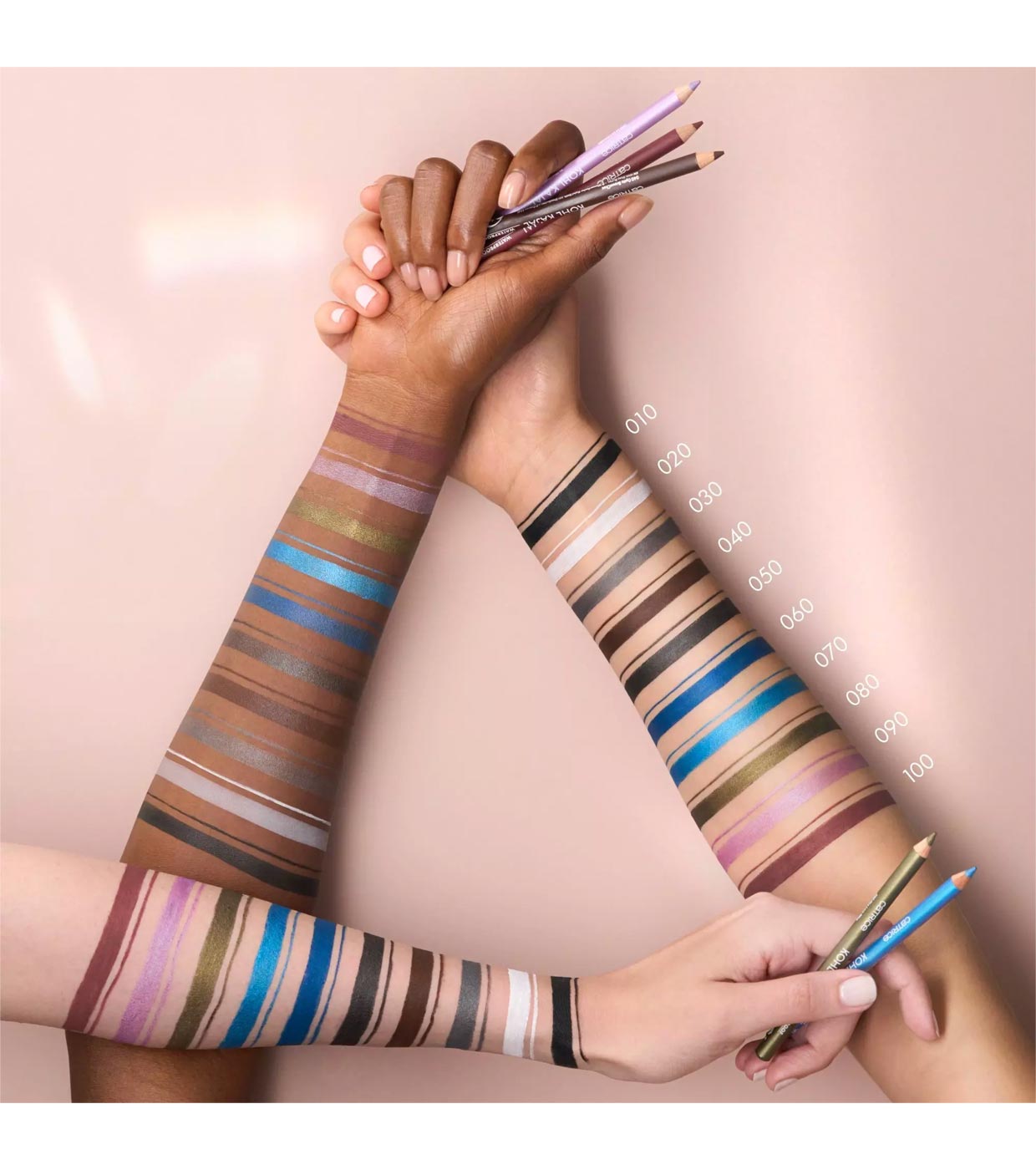 Graças à sua textura ultra-pigmentada, este lápis de olhos alcança um acabamento de alta cobertura.