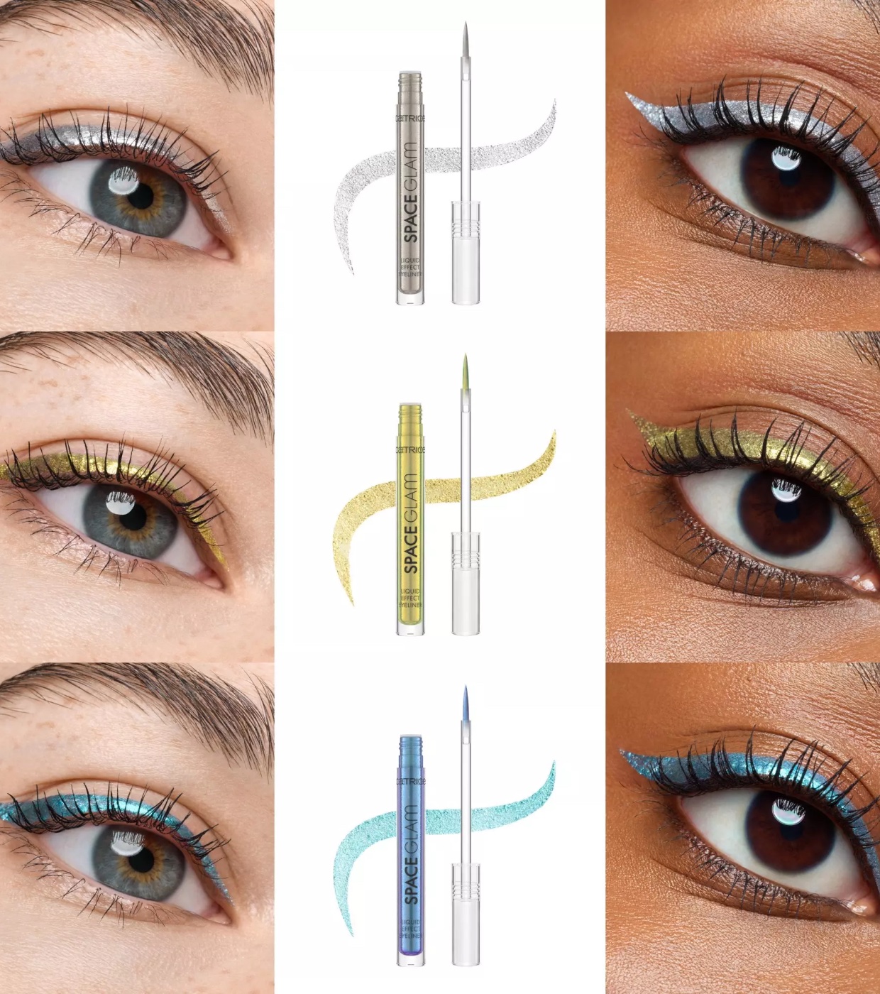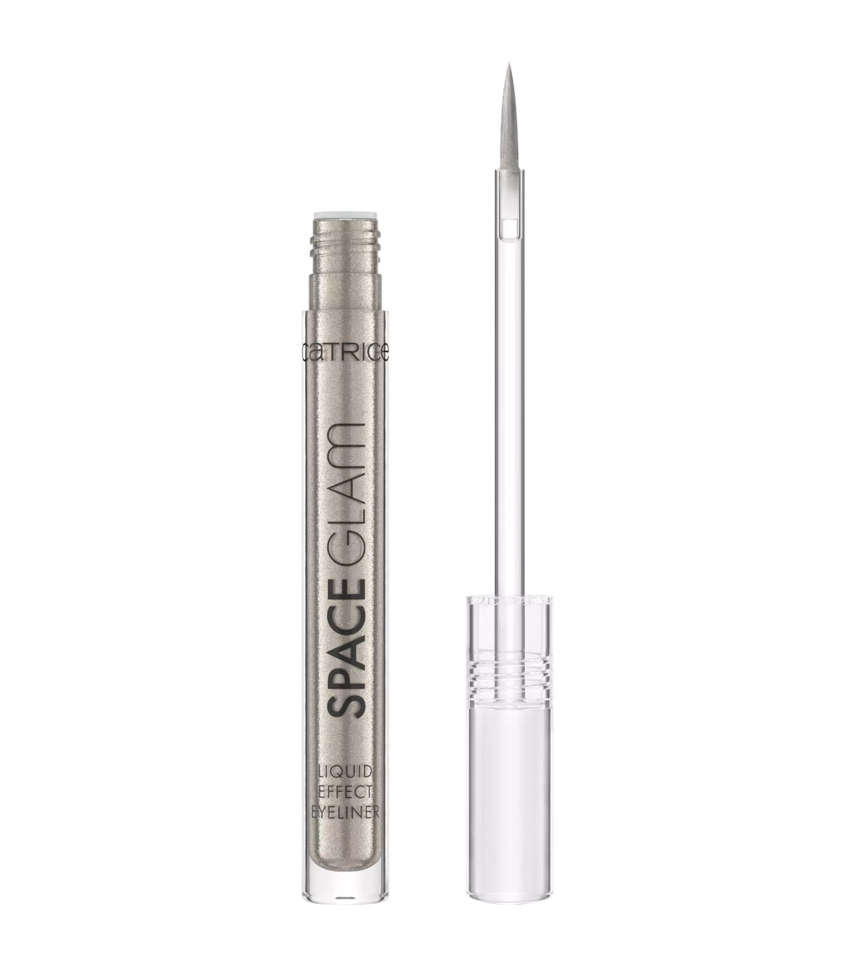 Dê um toque futurista ao seu visual com o delineador Space Glam Liquid Effect 010: Moonstone Metallic da Catrice .