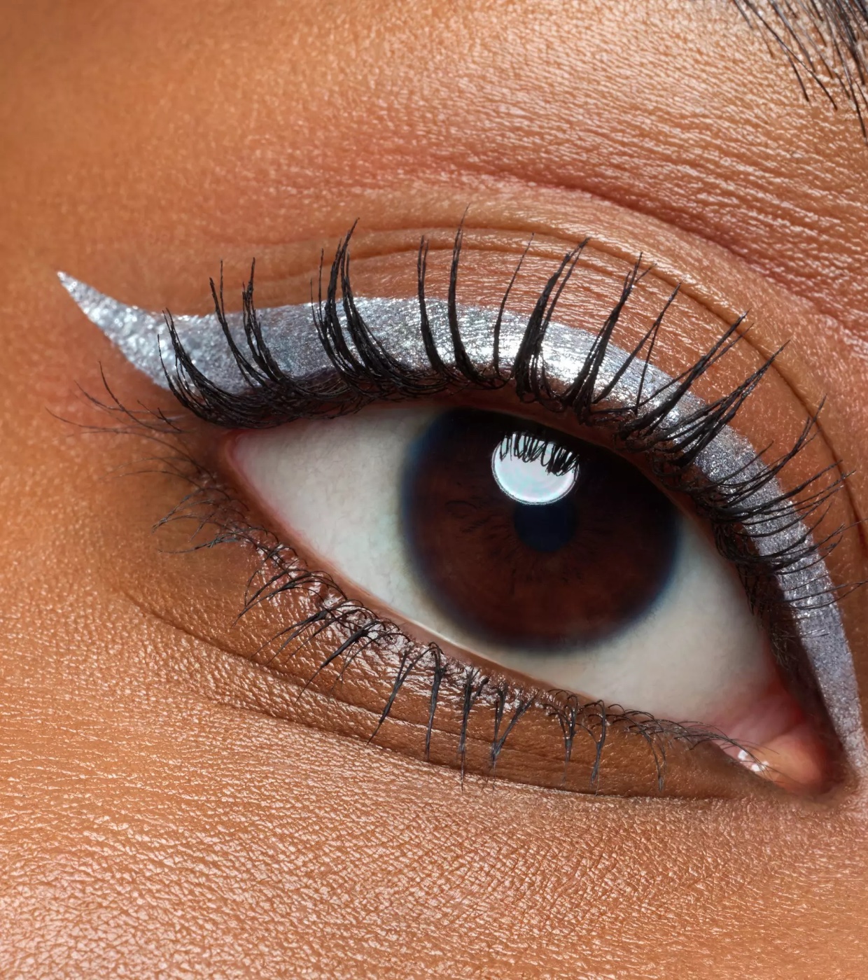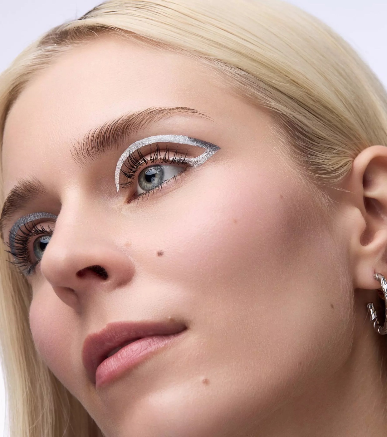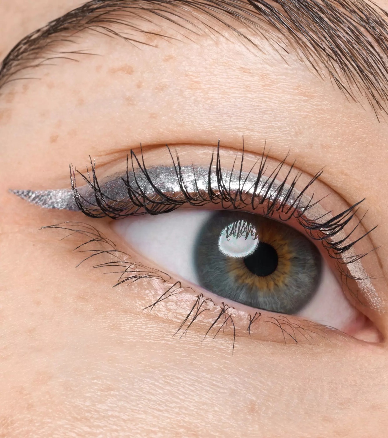 Seu tom prateado metálico hipnotizante proporciona um acabamento brilhante e marcante, ideal para looks de maquiagem marcantes.