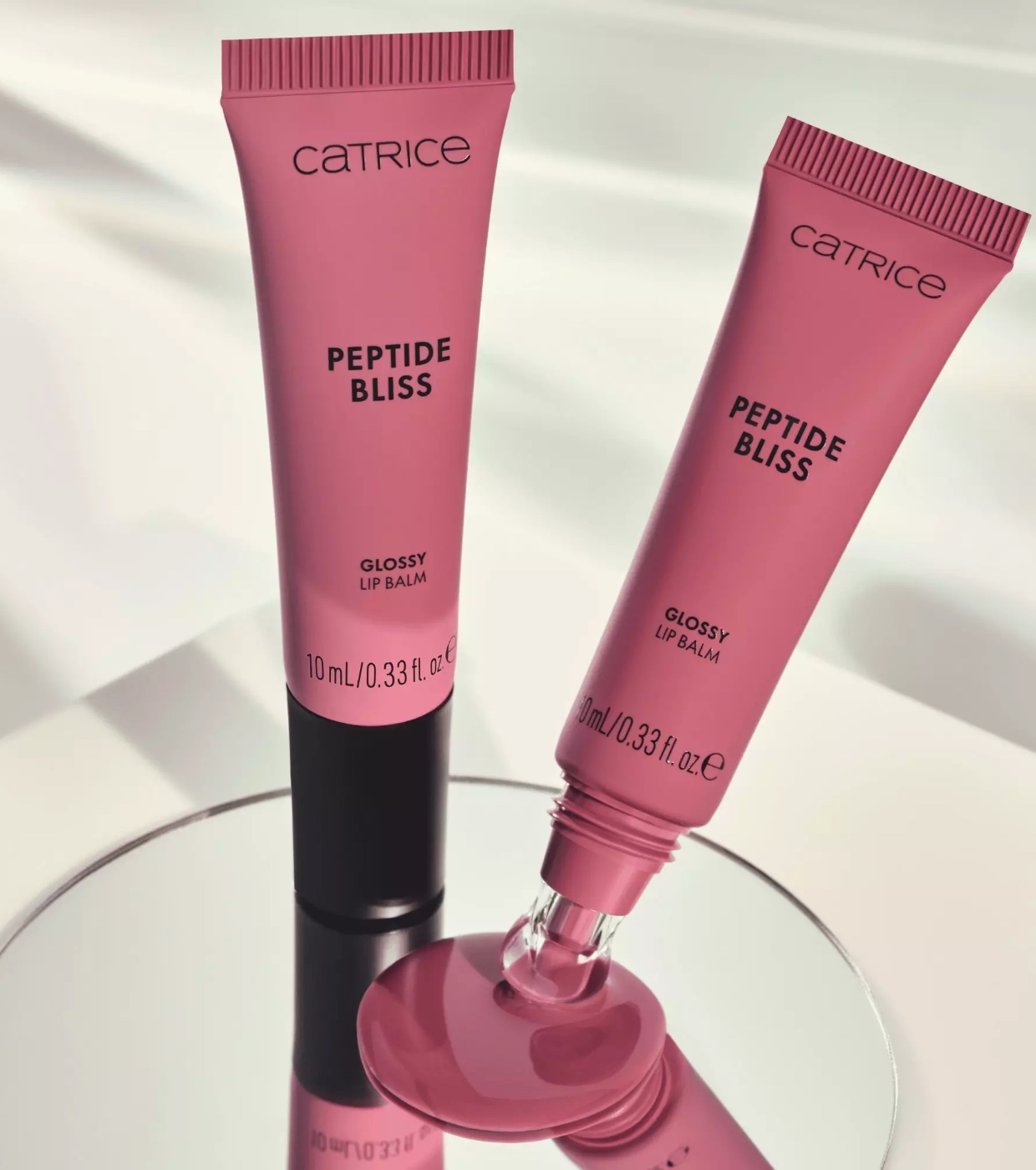 Reserve um momento para desfrutar de um brilho natural todos os dias com o protetor labial brilhante Peptide Bliss da Catrice .