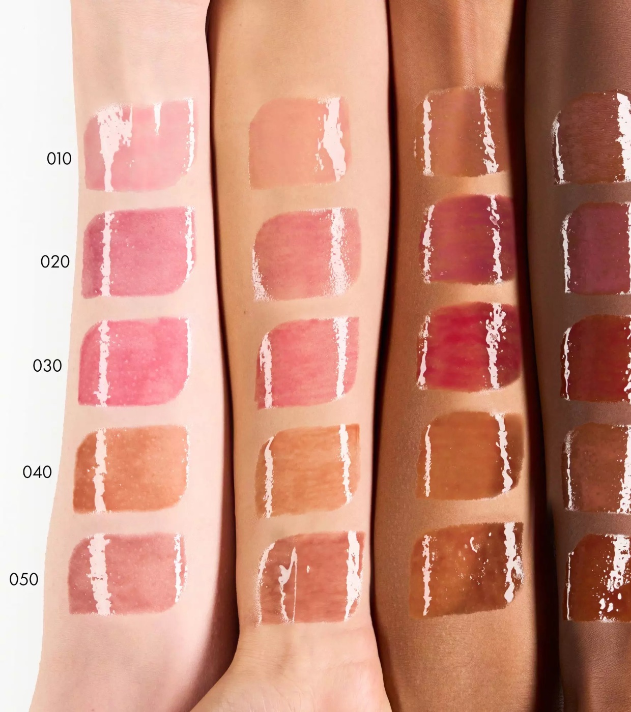 Sua textura macia e não pegajosa é fácil de aplicar, deixando um brilho luminoso e um perfume delicado.