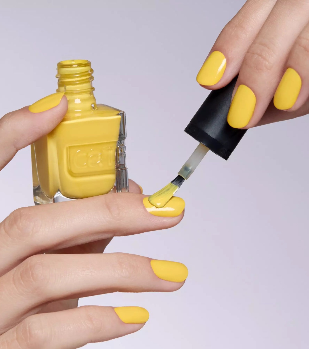 ETHYL ACETATE, BUTYL ACETATE, NITROCELLULOSE, POLYESTER-23, ACETYL TRIBUTYL CITRATE, ISOPROPYL ALCOHOL, STEARALKONIUM BENTONITE, EUTERPE OLERACEA FRUIT OIL, STYRENE/ACRYLATES COPOLYMER, ADIPIC ACID/NEOPENTYL GLYCOL/TRIMELLITIC ANHYDRIDE COPOLYMER, SILICA, DIACETONE ALCOHOL, DIPROPYLENE GLYCOL DIBENZOATE, SUCROSE ACETATE ISOBUTYRATE, ACRYLATES COPOLYMER, MALTOL, TRIETHOXYCAPRYLYLSILANE, PENTAERYTHRITYL TETRAISOSTEARATE, PHOSPHORIC ACID, ALUMINUM HYDROXIDE, CI 19140 (YELLOW 5 LAKE), CI 77891 (TITANIUM DIOXIDE).