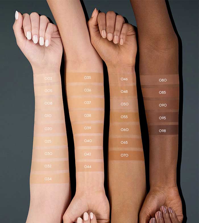 A textura líquida ultraleve e de alta cobertura, mas natural, corrige manchas, nutre com niacinamida que aperfeiçoa a pele e também é resistente à água e ao suor.