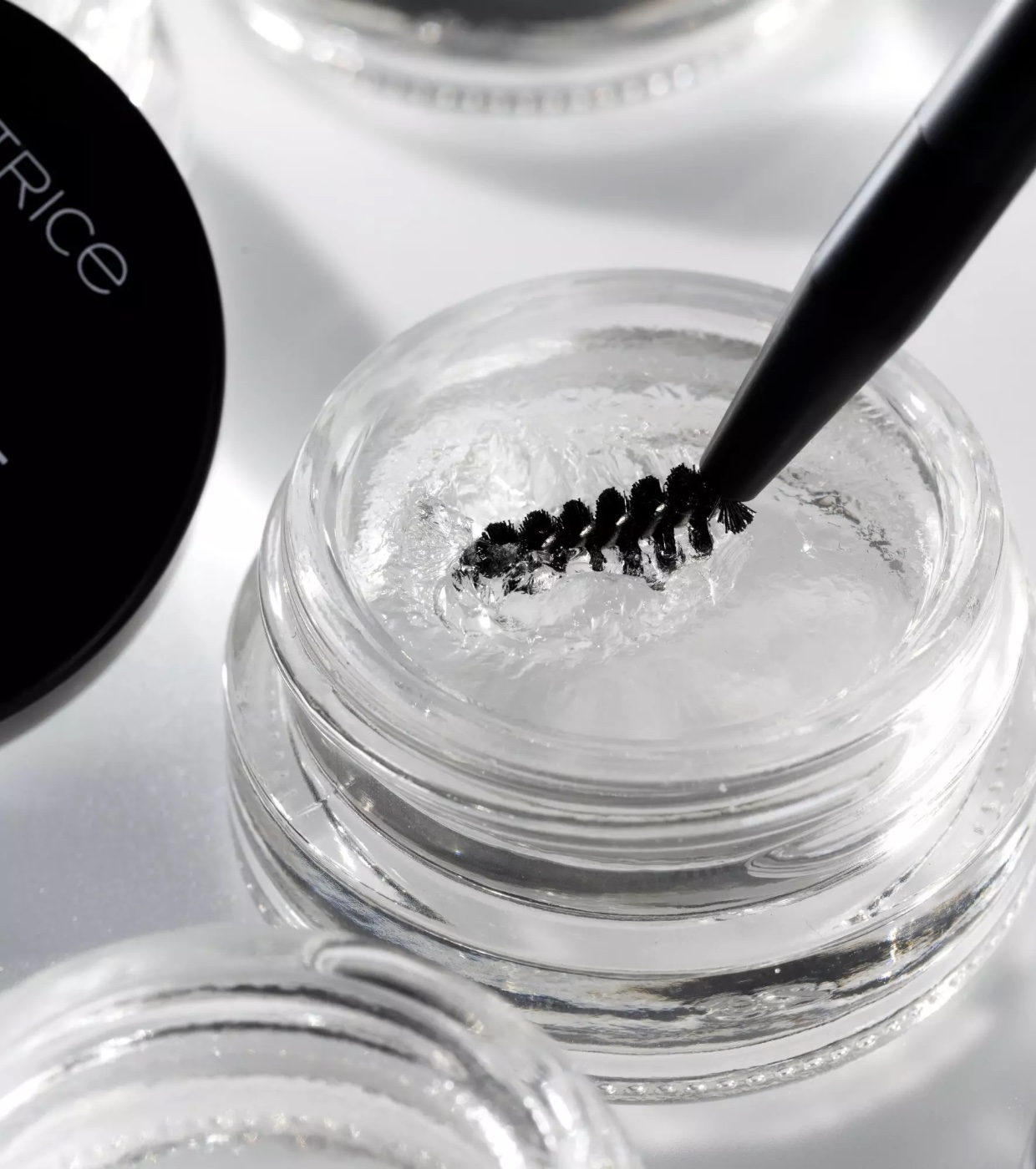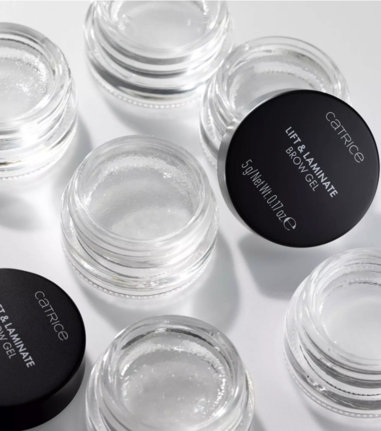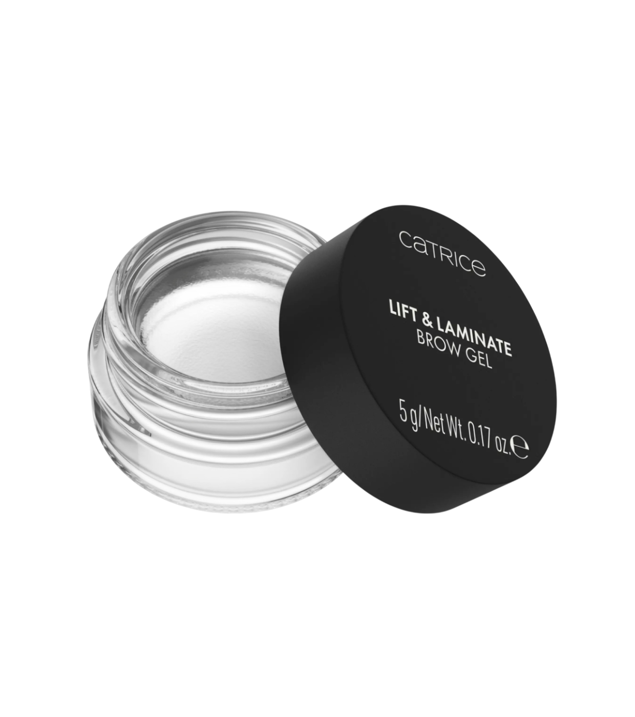 Adote a tendência de sobrancelhas laminadas com o gel para sobrancelhas Lift & Laminate da Catrice .