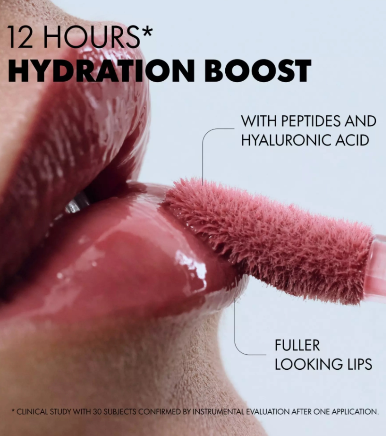 Sua fórmula é enriquecida com peptídeos e ácido hialurônico, que ajudam a reter a hidratação por até 12 horas, deixando os lábios mais macios, suaves e volumosos, sem qualquer sensação de formigamento.