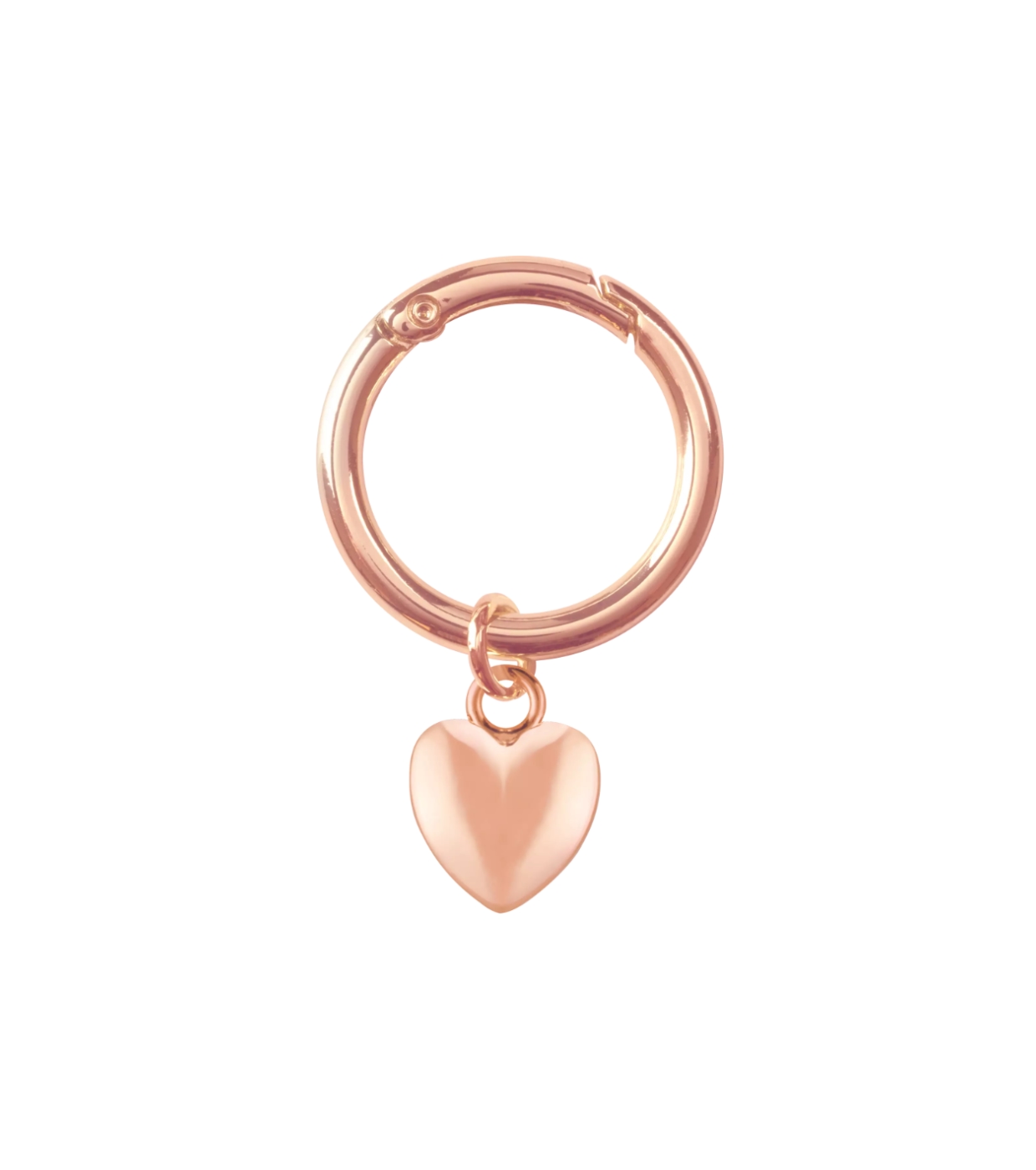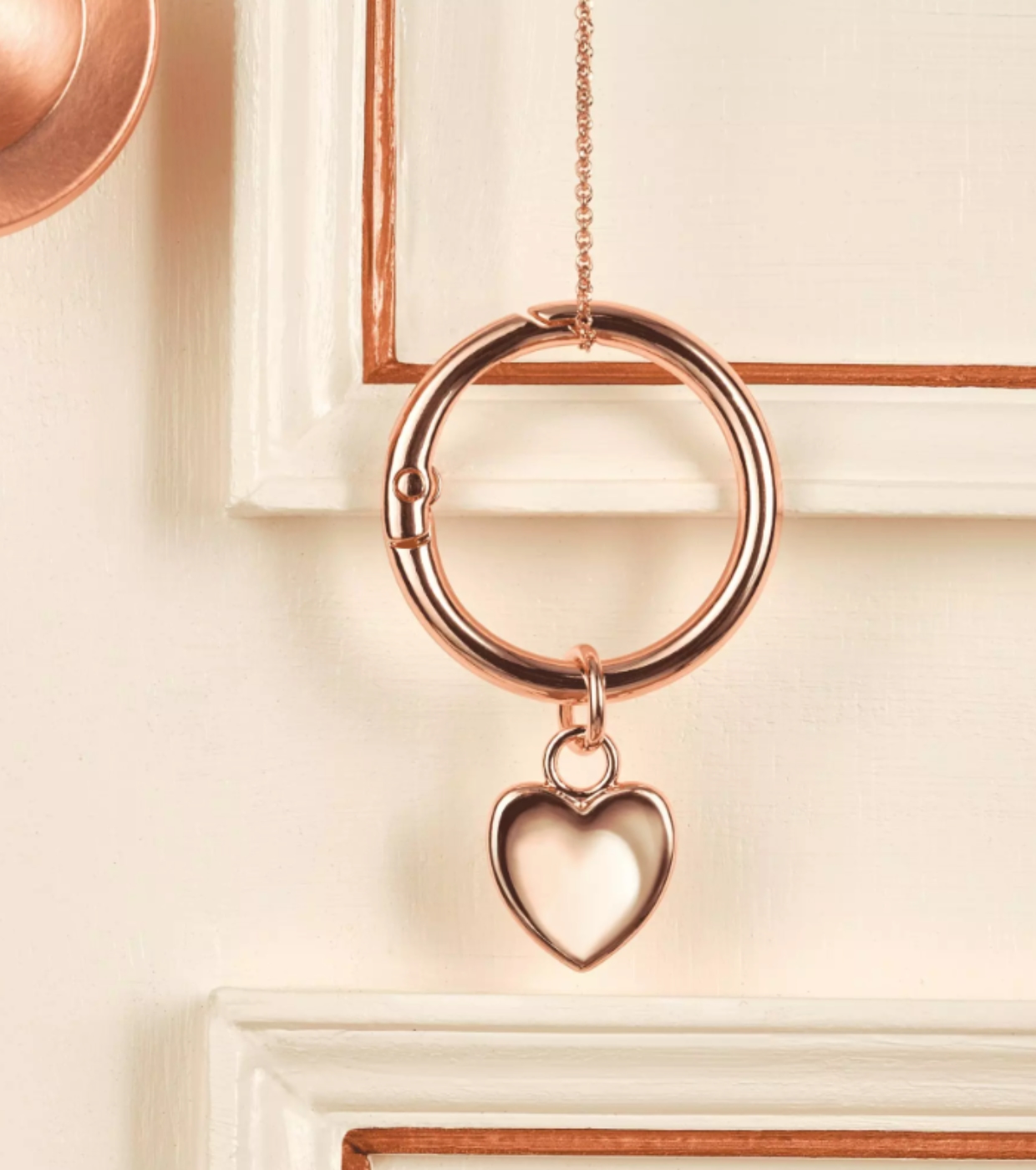 Com acabamento rosa metálico e um pingente em forma de coração, ele combina funcionalidade e estilo em um gesto simples.