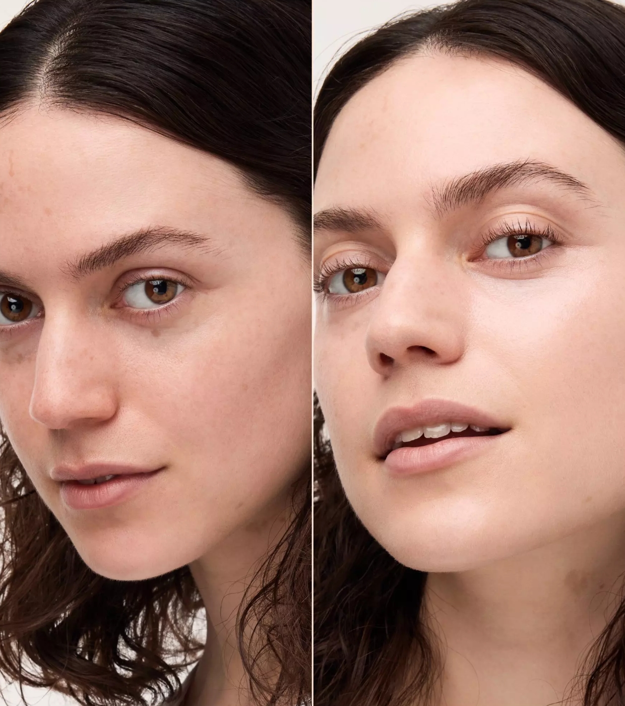 Seu tom rosa claro e reflexivo neutraliza tons escuros e proporciona um efeito refrescante imediato.