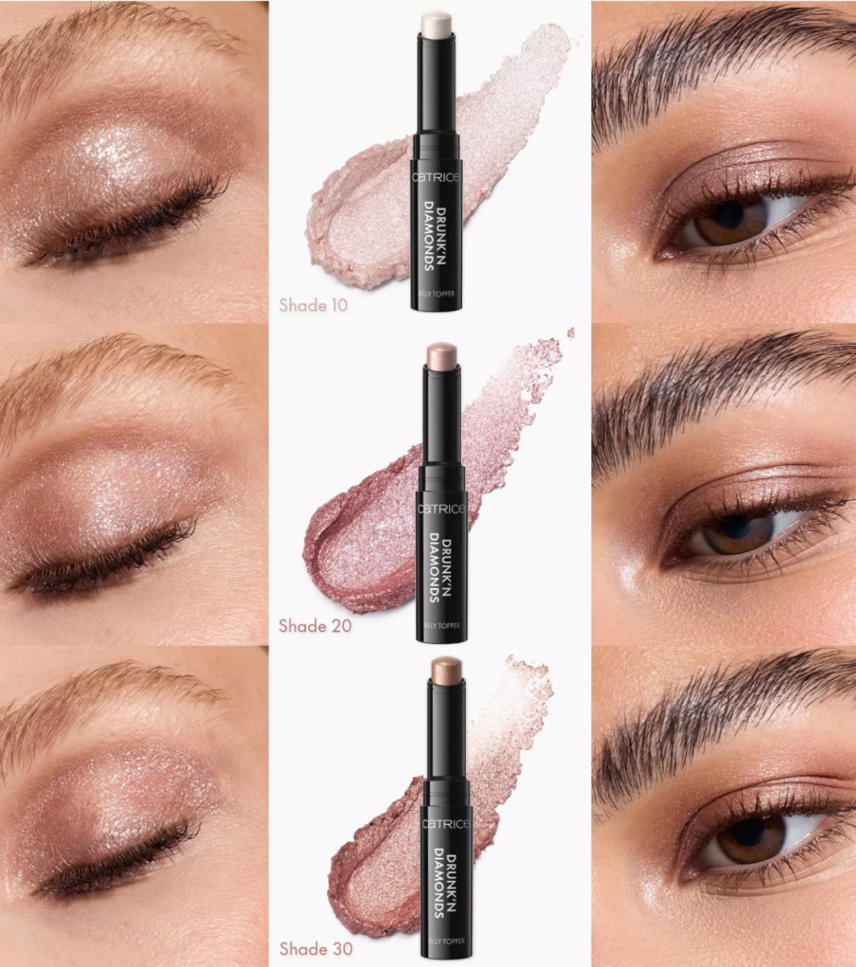 É hora de dar um up na sua maquiagem dos olhos! O Catrice Drunk'n Diamonds Jelly Topper transforma seu visual com um brilho luminoso e multidimensional graças às suas pérolas iridescentes e textura elástica e gelatinosa.
