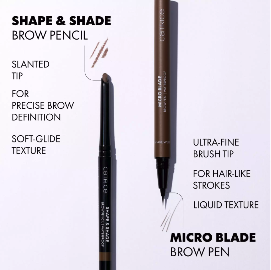 Sobrancelhas perfeitas estão a apenas um traço de distância com o lápis de sobrancelha à prova d'água Shape & Shade da Catrice , um lápis de sobrancelha à prova d'água desenvolvido para definir, preencher e modelar com um acabamento natural.