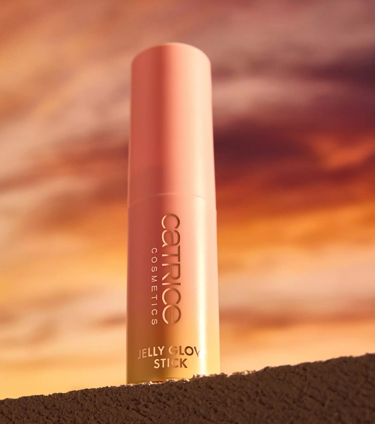 Sinta o frescor e a luminosidade do pôr do sol com este iluminador em bastão Jelly Glow da Catrice com textura gelatinosa.