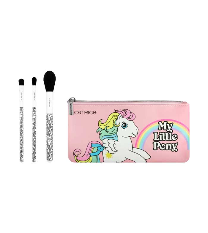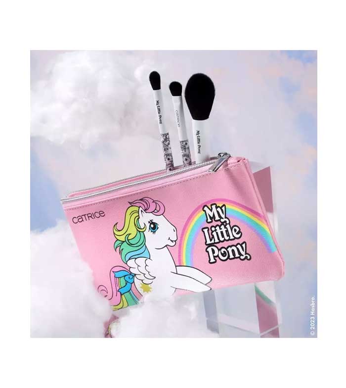 Conjunto de pincéis faciais e bolsa de cosméticos da coleção My Little Pony da Catrice.