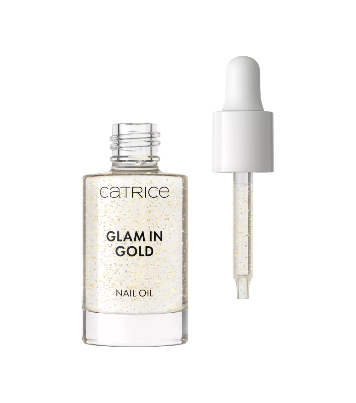 Mime as suas unhas e cutículas com um toque de luxo graças ao óleo para unhas Glam In Gold da Catrice .