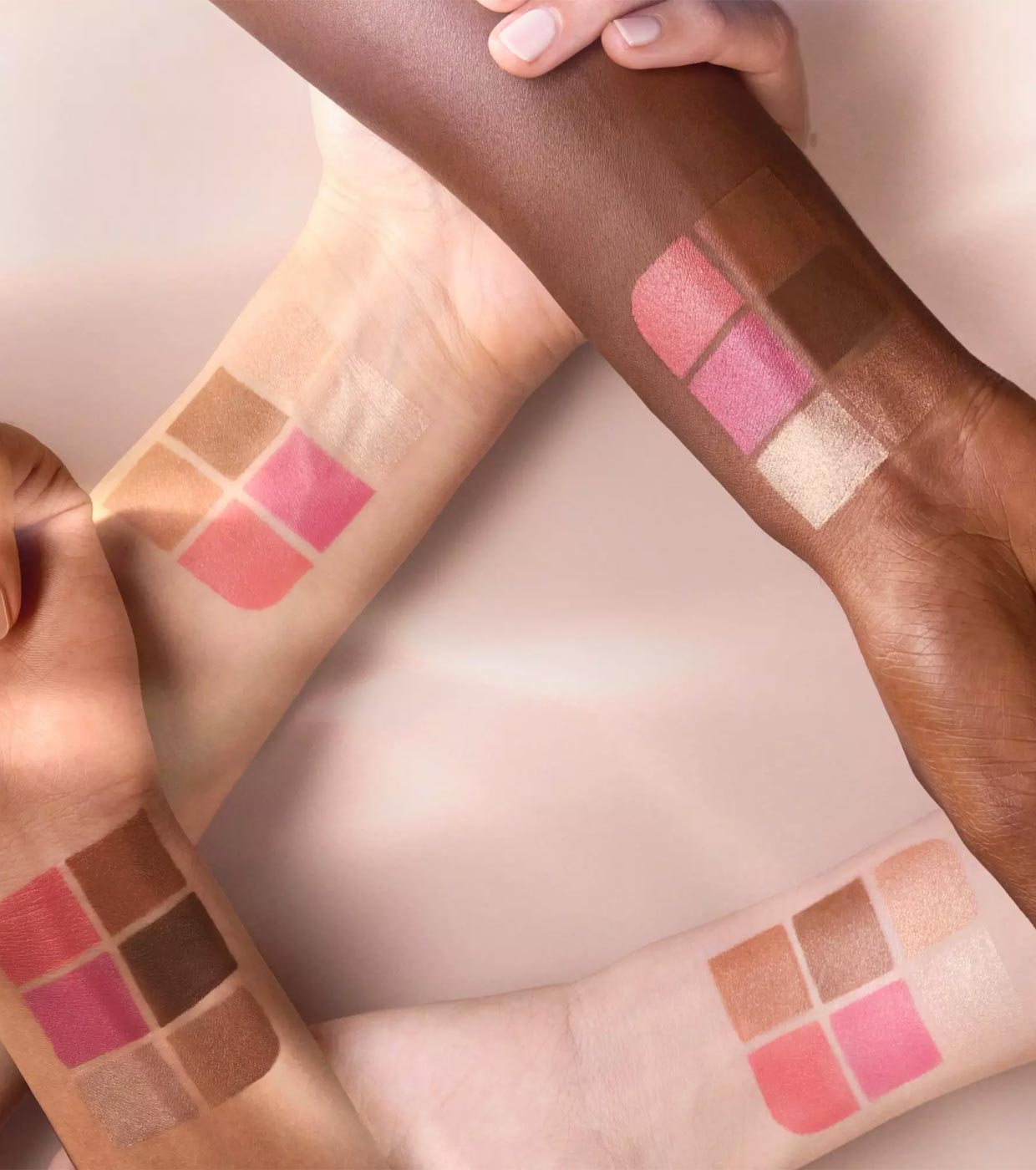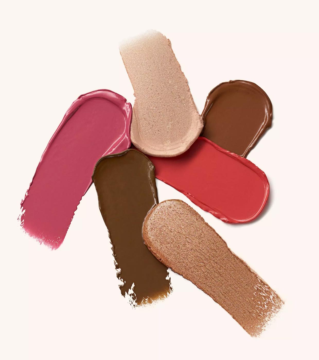 Contém texturas leves e cremosas de bronzer, blush e iluminador, cada uma em 2 tonalidades diferentes.