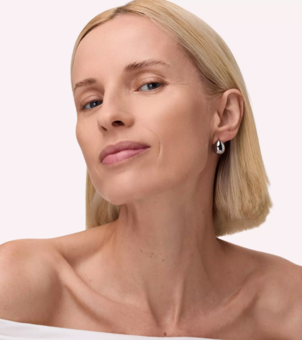 A textura sedosa desliza uniformemente sobre a pele, sem craquelar ou acumular nas linhas finas, deixando um resultado impecável e confortável.