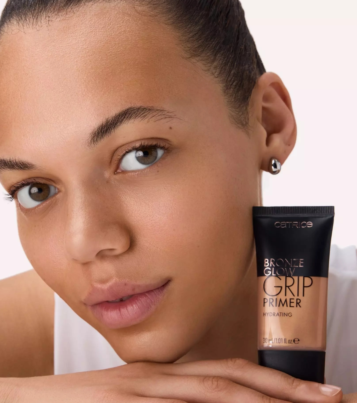 Obtenha um efeito radiante de “hora dourada” com o Primer Bronze Glow Grip da Catrice .