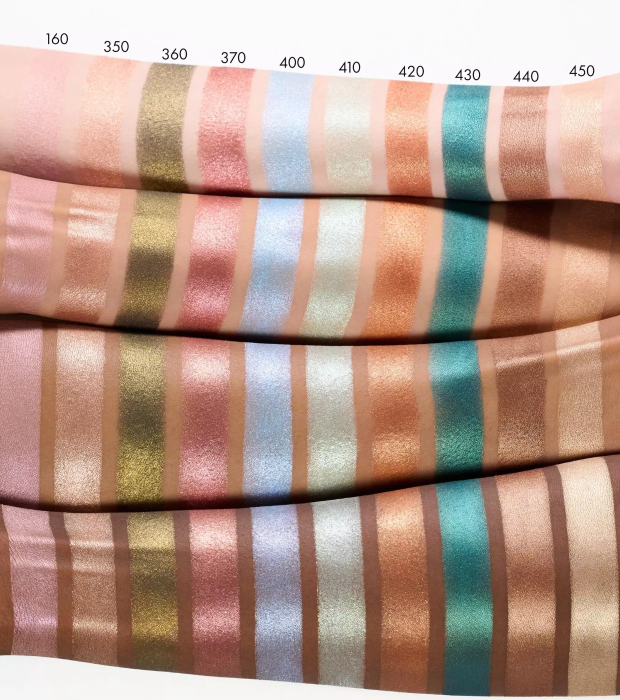 Essas sombras são uma delícia, com textura em pó altamente pigmentada, ótima cobertura e vários acabamentos, como matte, acetinado e metálico.