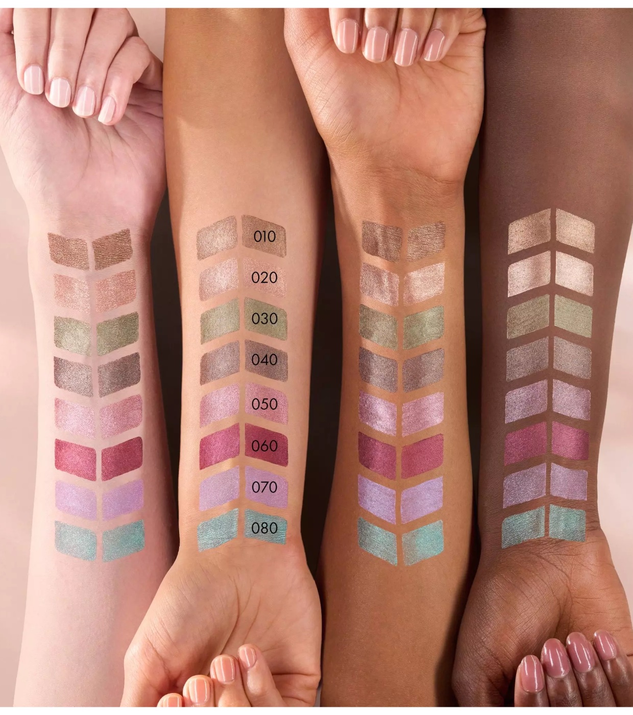 Uma sombra em bastão altamente pigmentada com uma textura resistente a manchas formulada com extrato de Aloe Vera.