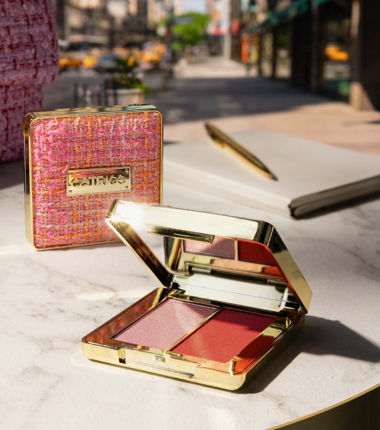 Este duo de iluminadores Catrice para olhos e bochechas combina dois tons perfeitamente coordenados para adicionar cor, dimensão e luminosidade ao rosto.