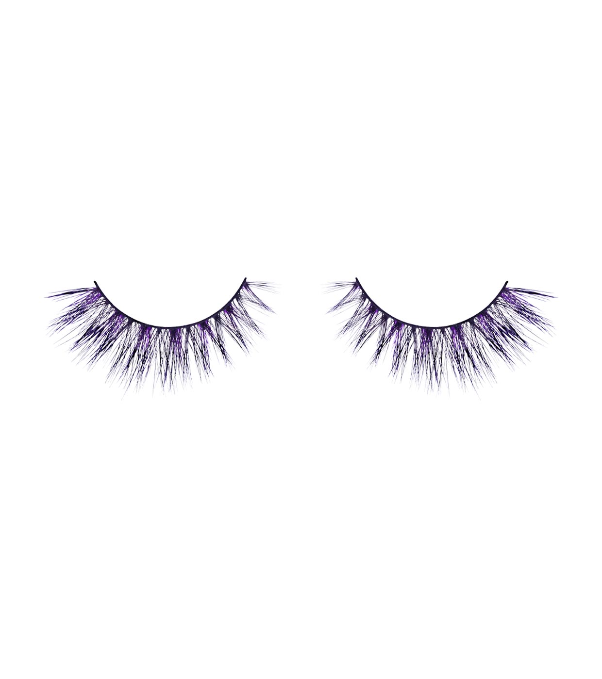 Cílios artificiais pretos com um toque de cor que realça o olhar.