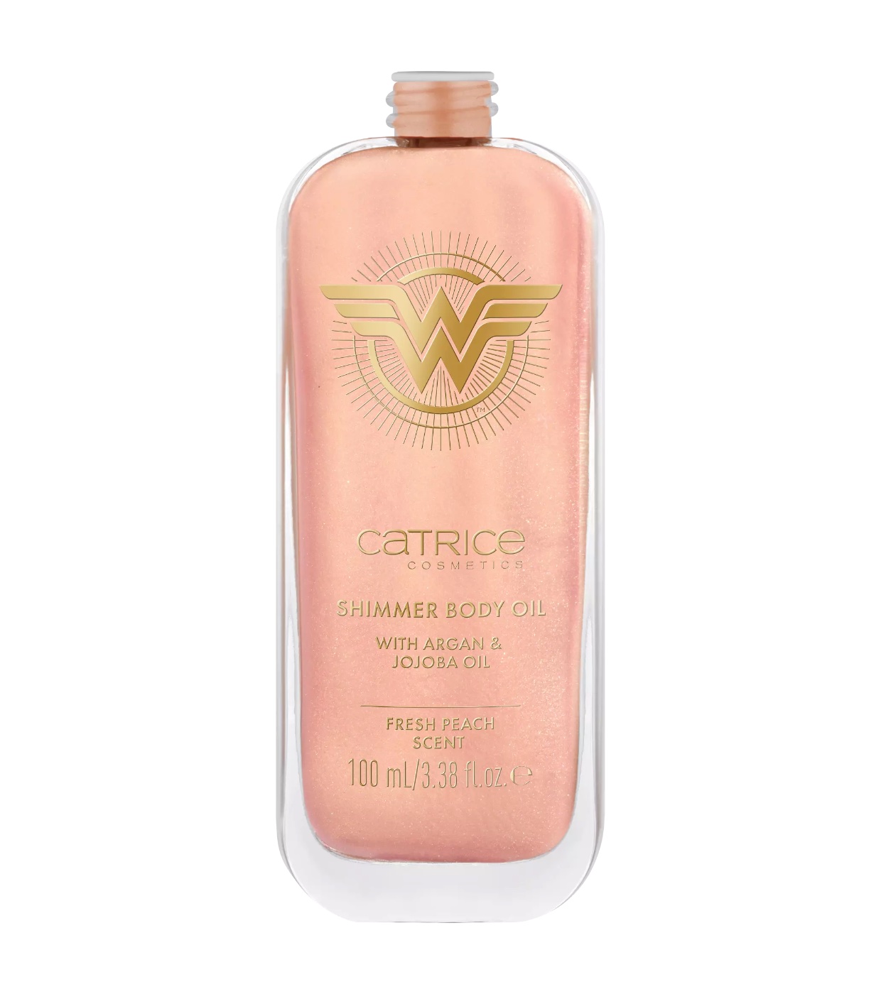 Descubra o luxo do Catrice Wonder Woman 020 Sassy Body Oil , um óleo corporal com textura de ouro rosa e partículas brilhantes de ouro rosa que transformarão sua pele, dando-lhe um brilho quente e elegante.
