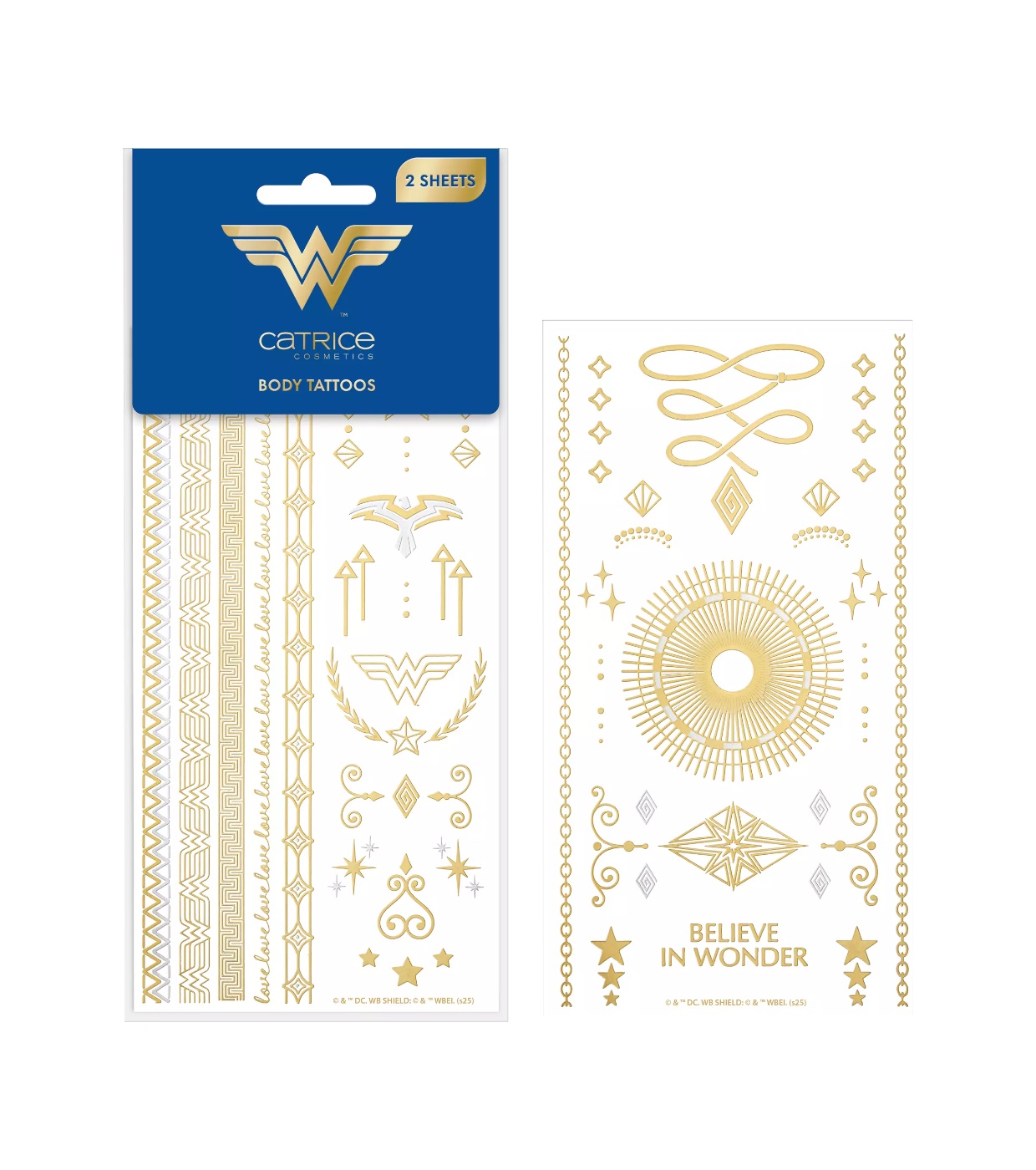 Transforme seu visual com tatuagens corporais da Catrice Wonder Woman.