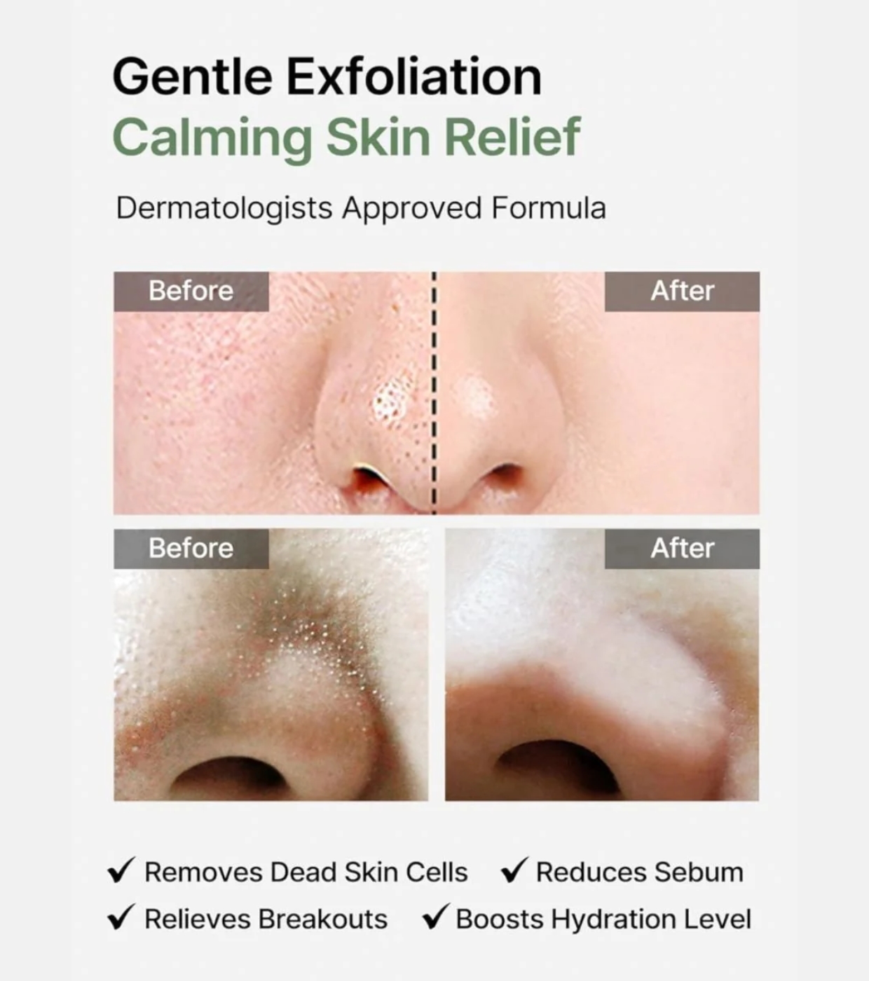 - Esfoliação suave, mas eficaz, com BHA (ácido salicílico).
