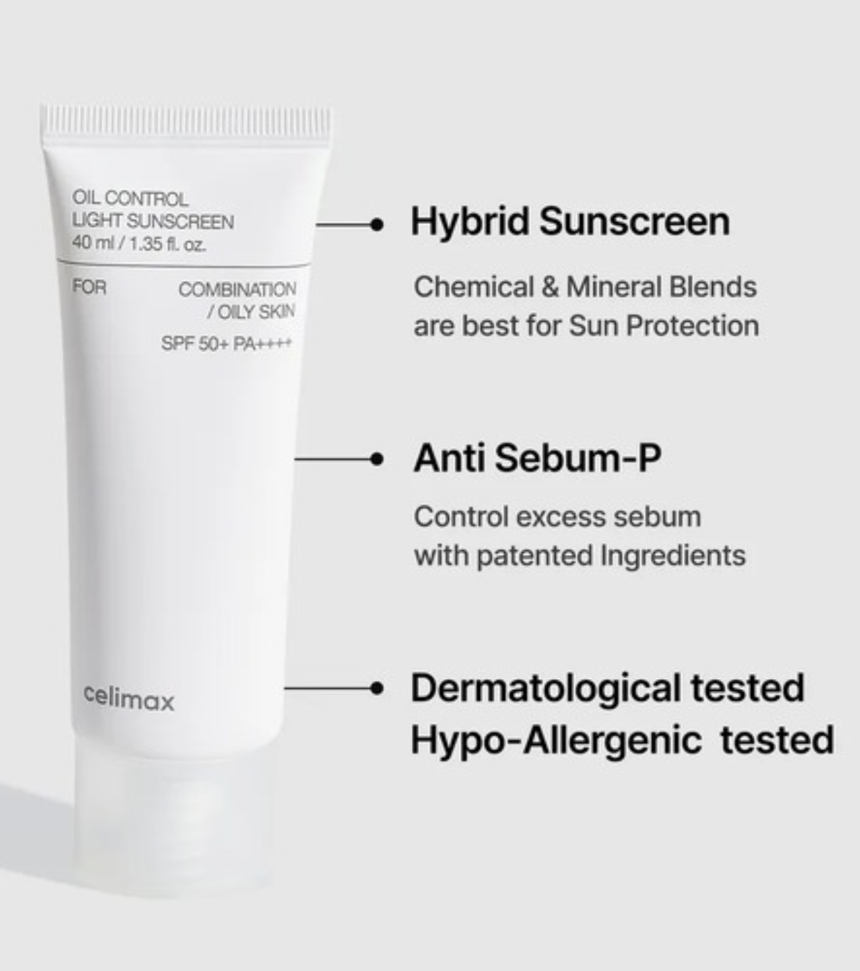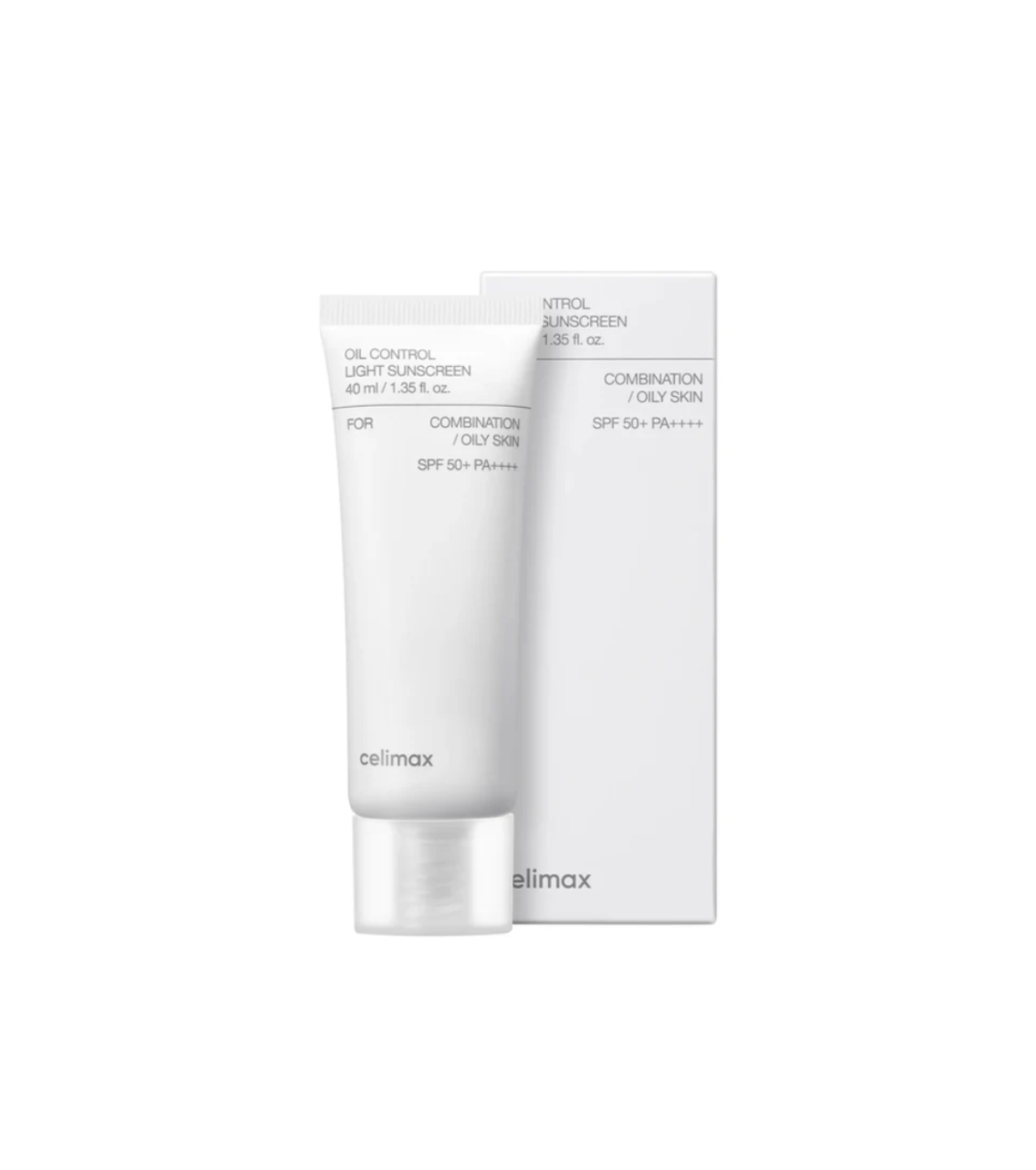 O Oil Control Light Sunscreen SPF 50+ PA++++ da Celimax é um protetor solar híbrido de última geração, especialmente formulado para peles mistas, oleosas e com tendência à acne.