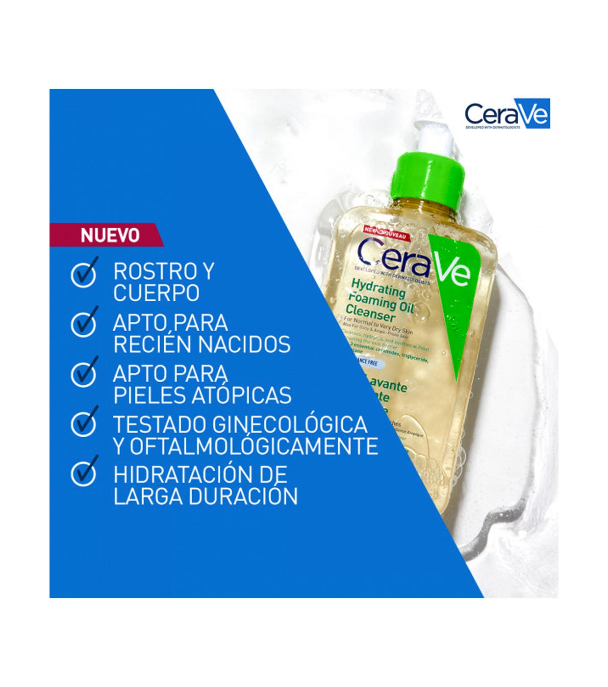 Óleo de limpeza espumante hidratante para pele normal a muito seca da Cerave.