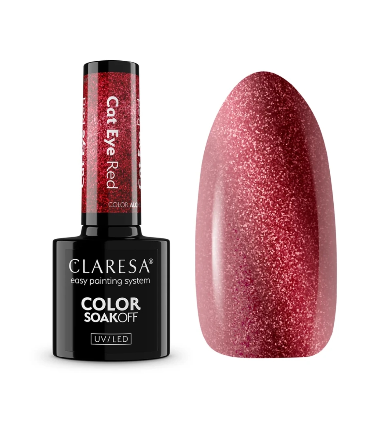 O verniz semipermanente Claresa com acabamento "Olho de Gato" cria o famoso efeito olho de gato quando um íman é aproximado, gerando um reflexo luminoso, semelhante a uma pedra preciosa, que muda com o movimento da mão e fica espetacular sob qualquer luz.
