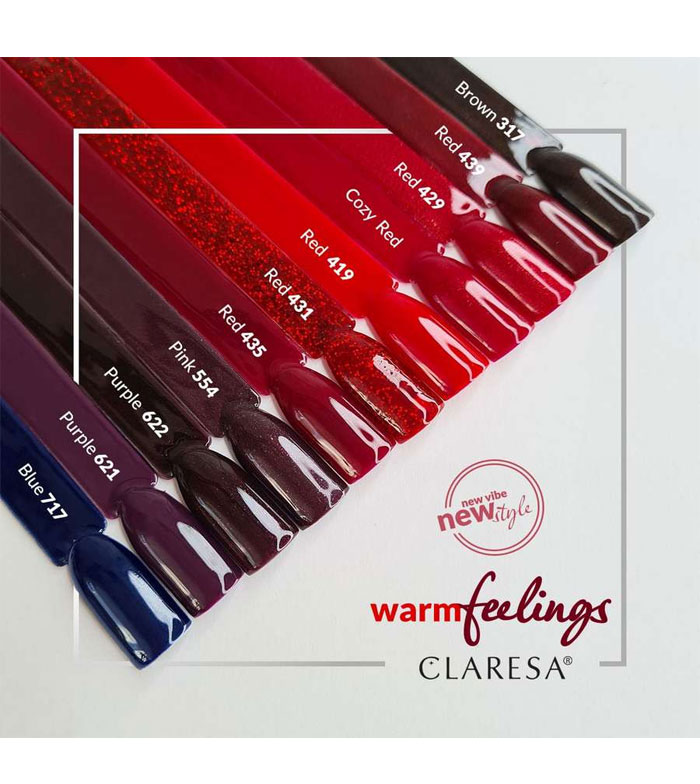 Os esmaltes semipermanentes Claresa oferecem uma duração de até 3 semanas em perfeitas condições e cobertura total em 2 camadas.