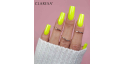 A coleção Funky Disco da Claresa inclui 7 esmaltes semipermanentes em tons vibrantes de rosa, laranja, amarelo, verde, azul e roxo, todos adornados com milhares de partículas brilhantes.