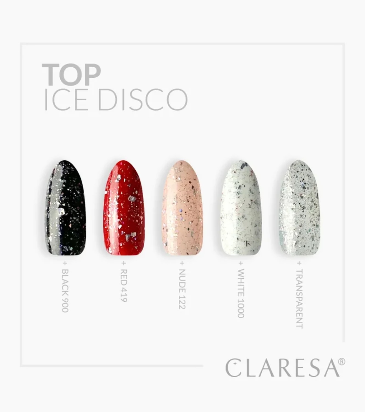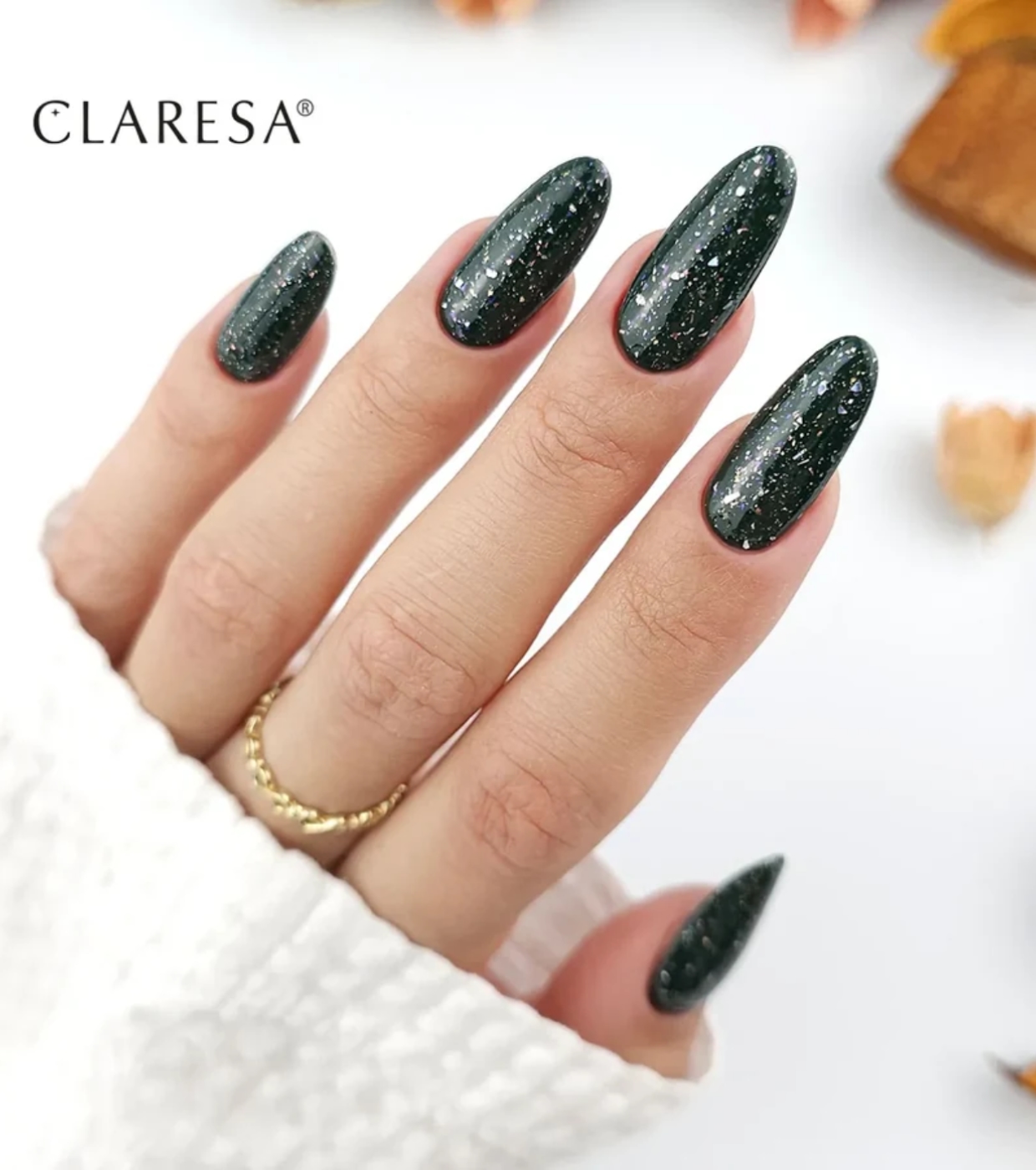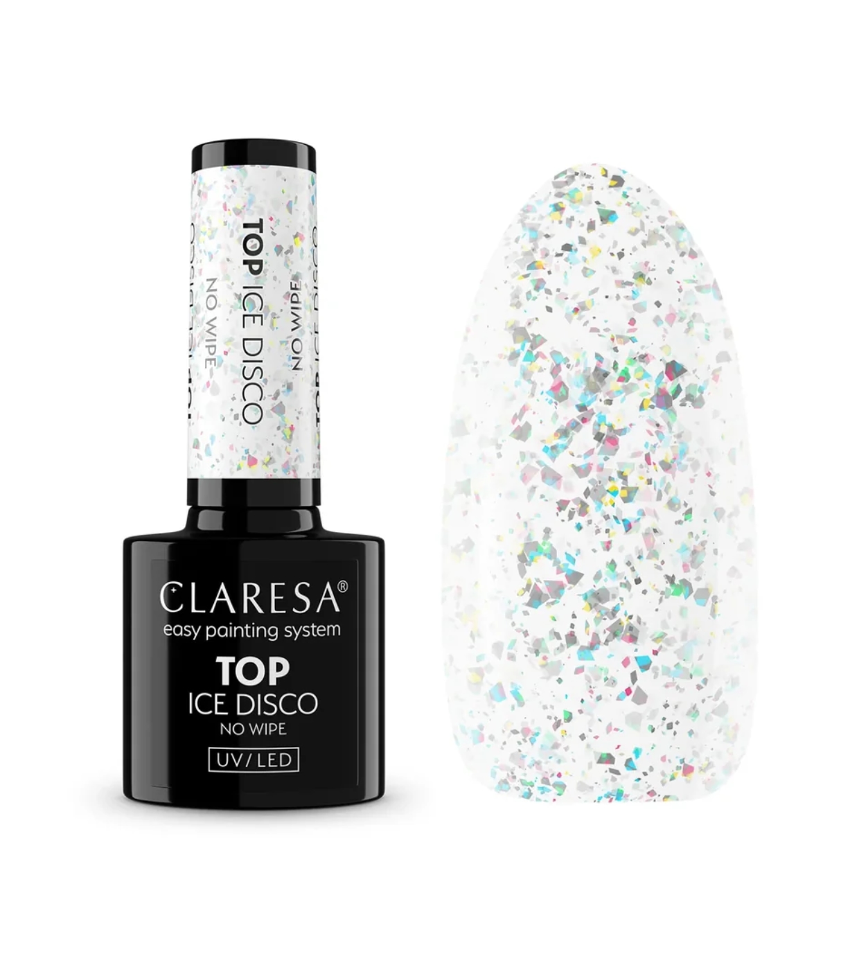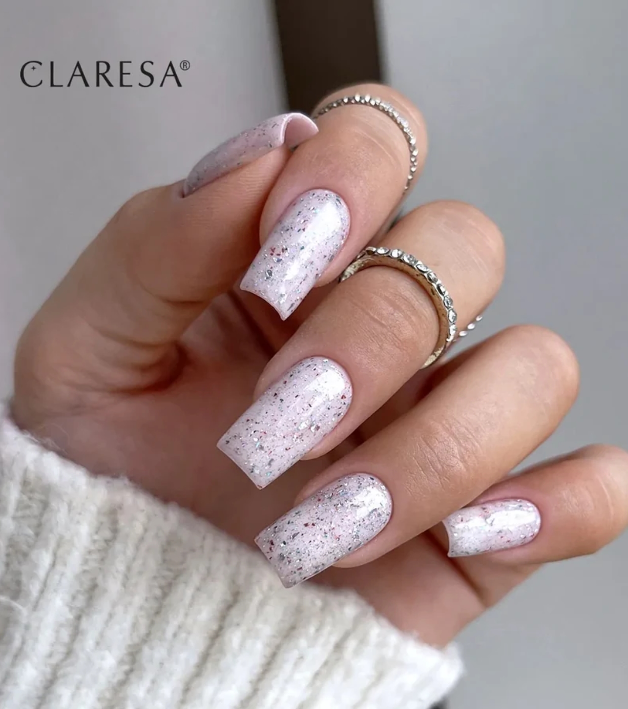 Dê um toque elegante a qualquer manicure em segundos com este top coat transparente da Claresa com flocos prateados.