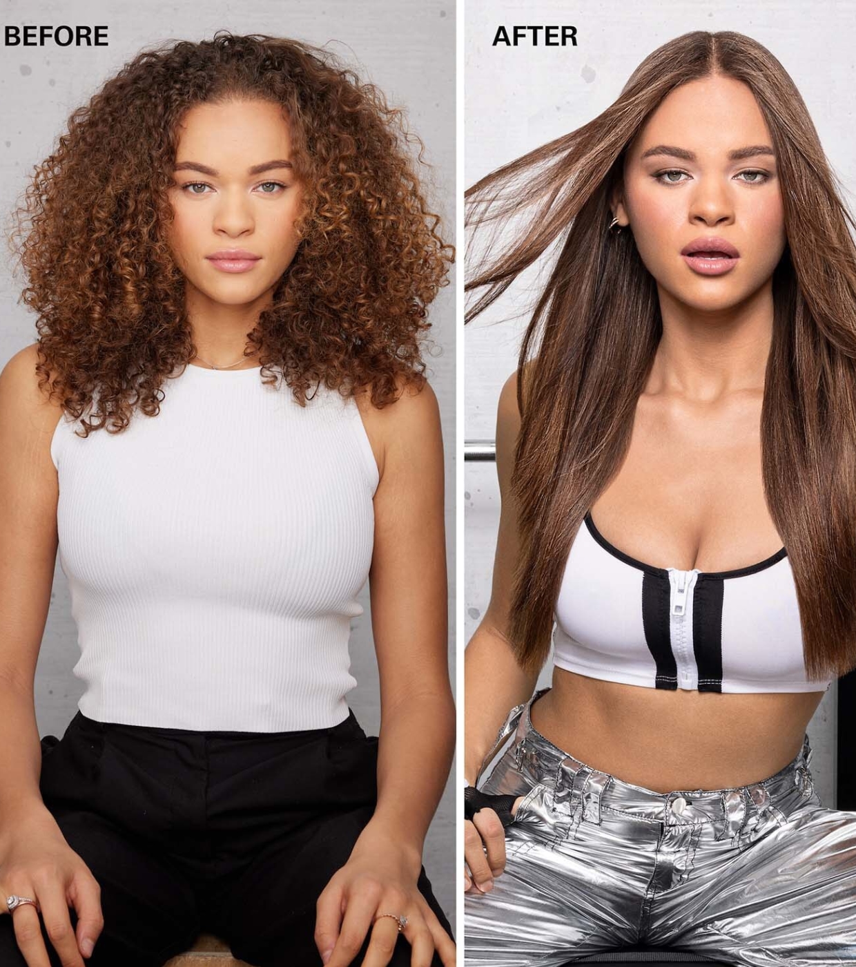 Graças à sua fórmula ativada pelo calor, ele cria um escudo invisível que retém a umidade, impedindo que o cabelo retorne à sua textura original.