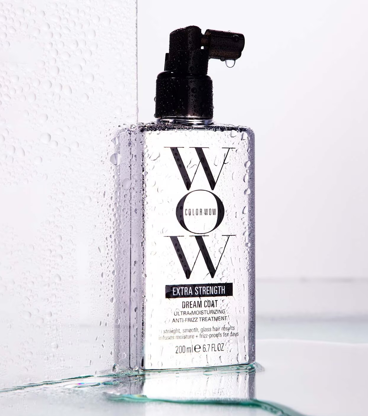 Controle o frizz com o spray antifrizz Dream Coat Extra Strenght Color Wow , desenvolvido para manter seu cabelo macio, suave e resistente à umidade por 3 a 4 lavagens.