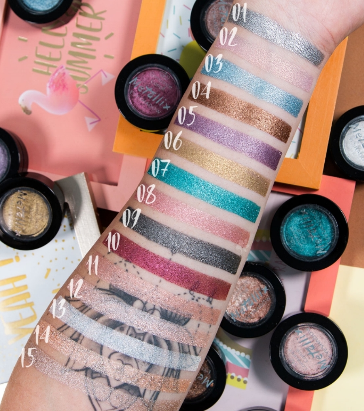 Sombra de olhos super pigmentada, acabamento metálico e cores intensas.