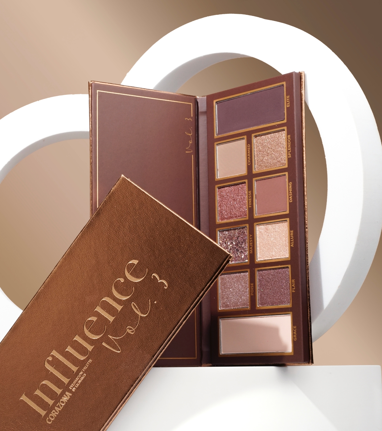 A nova paleta de sombras Influence Vol. 3 da CORAZONA nasce da vontade de agregar mais elegância ao dia a dia, sem perder tempo e nem deixar de lado a essência.