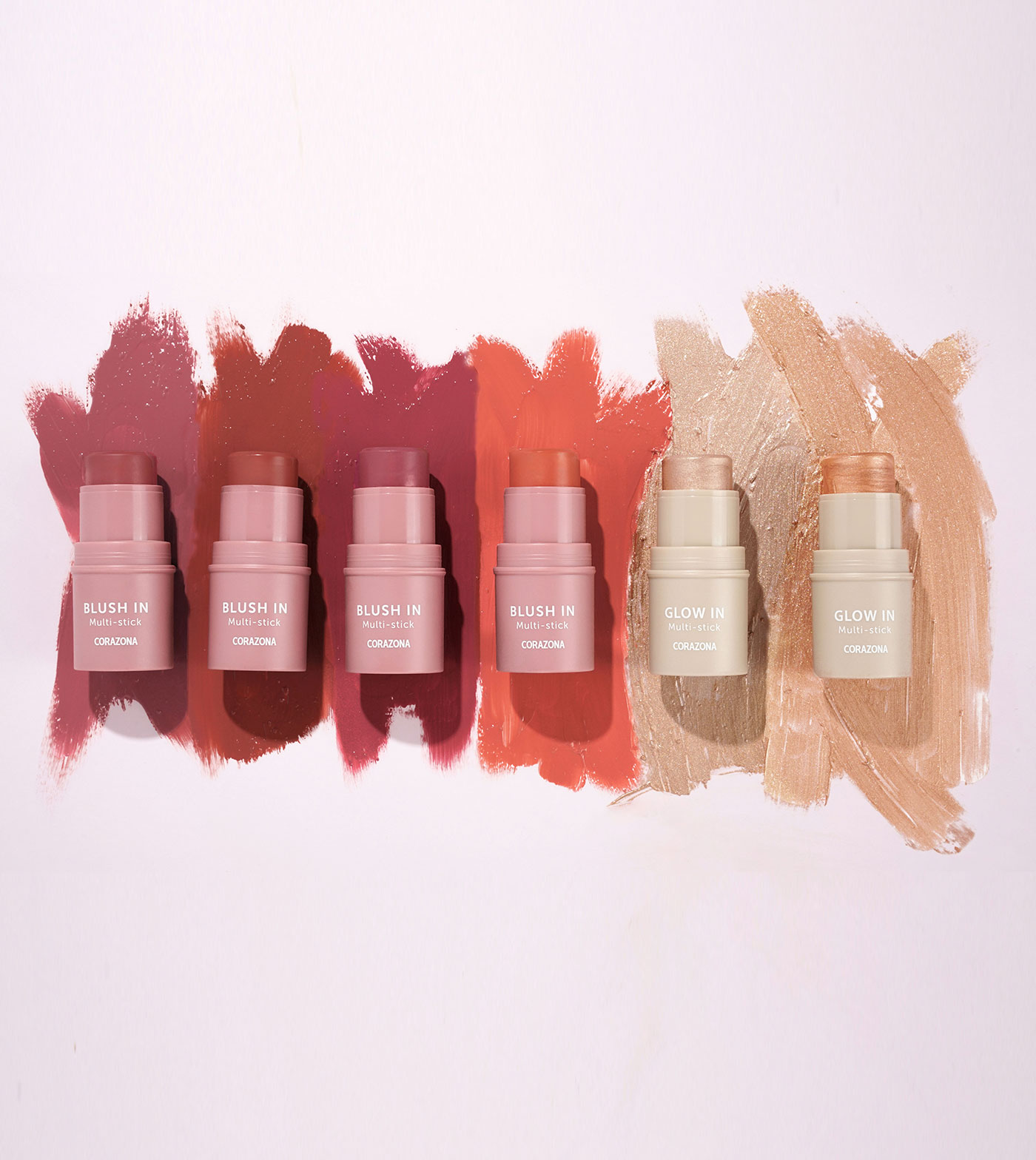 Os blushes em creme "Blush in" junto com os iluminadores "Glow in" da CORAZONA vêm para facilitar a sua vida de beleza.