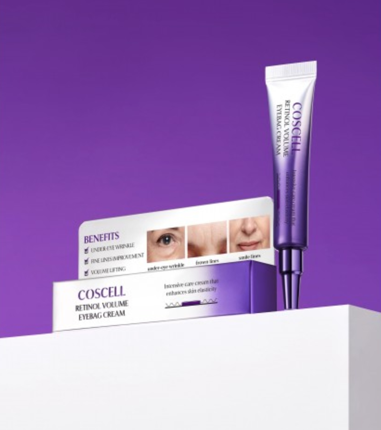 O Retinol Volume Eye Bag Cream da COSCELL é um tratamento específico para o contorno dos olhos, formulado para suavizar linhas finas, melhorar a firmeza e reduzir visivelmente a aparência de bolsas.