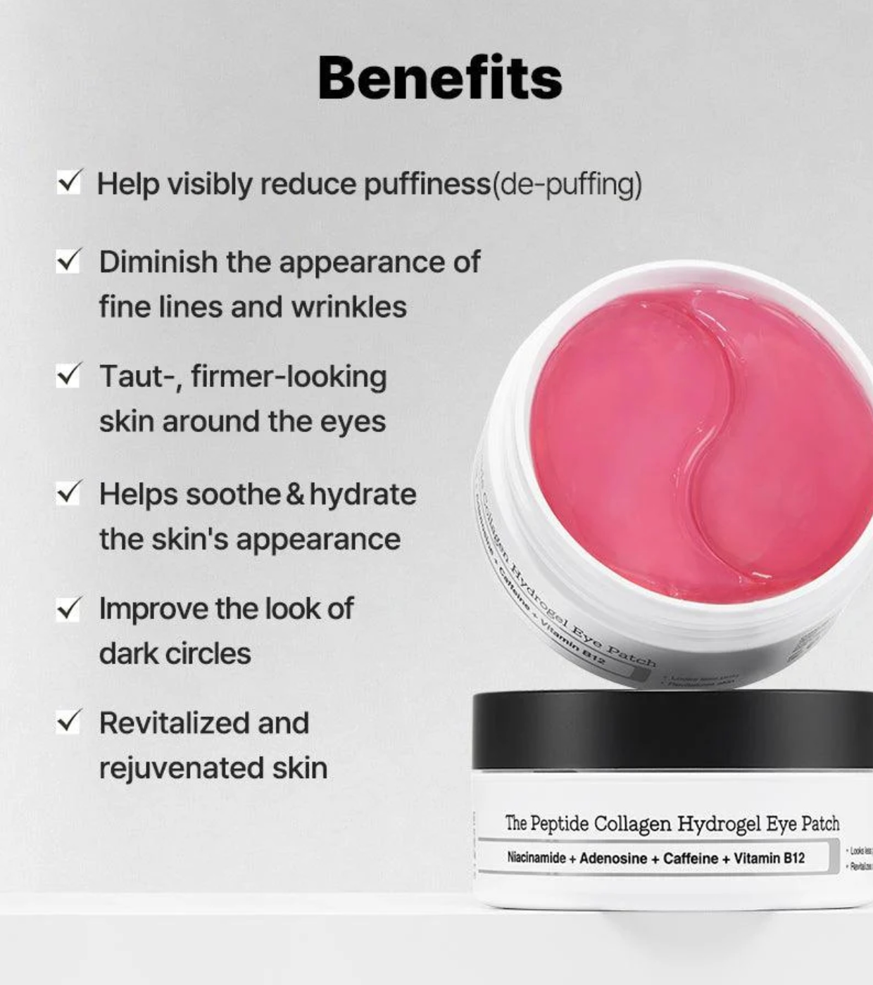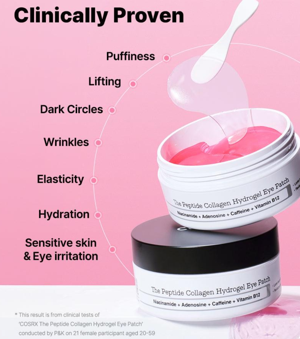 Os patches de hidrogel para contorno dos olhos The Peptide Collagen da COSRX são a solução perfeita para cuidar da área delicada sob os olhos.