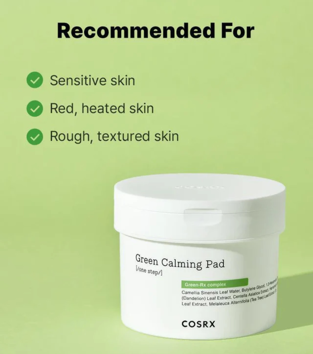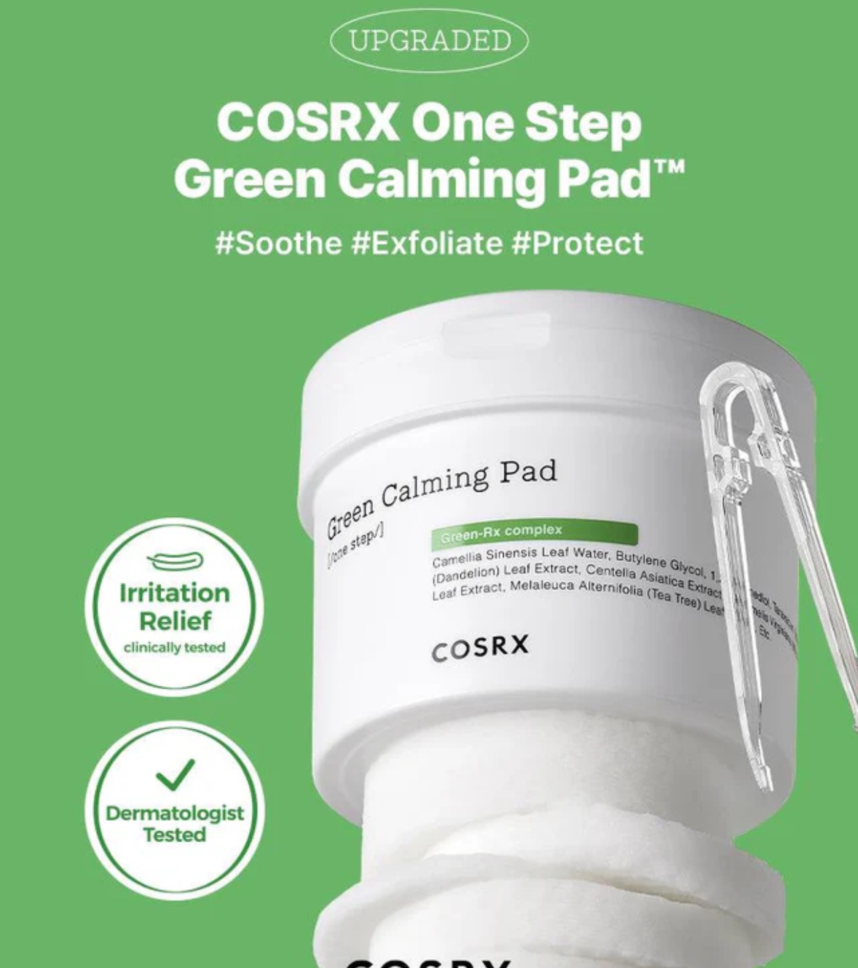 Tónico facial calmante Green em formato pads da COSRX O herói que cuida da sua pele, suavizando-a e acalmando a sua sensibilidade!