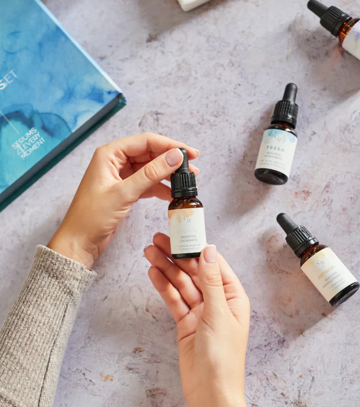 CR Cosmetics Calming Booster é um tratamento nutritivo intensivo desenvolvido para peles secas, sensíveis ou irritadas.