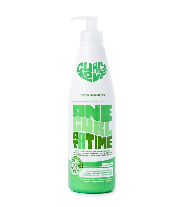 Shampoo desintoxicante com vinagre de maçã, pepino e chá verde de Curly Love.