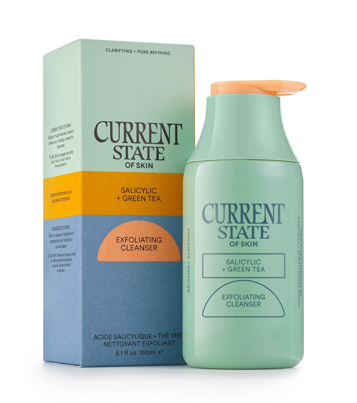 Current State O limpador esfoliante minimizador de poros penetra profundamente para iluminar, suavizar e remover marcas de acne passada sem ressecar a pele.