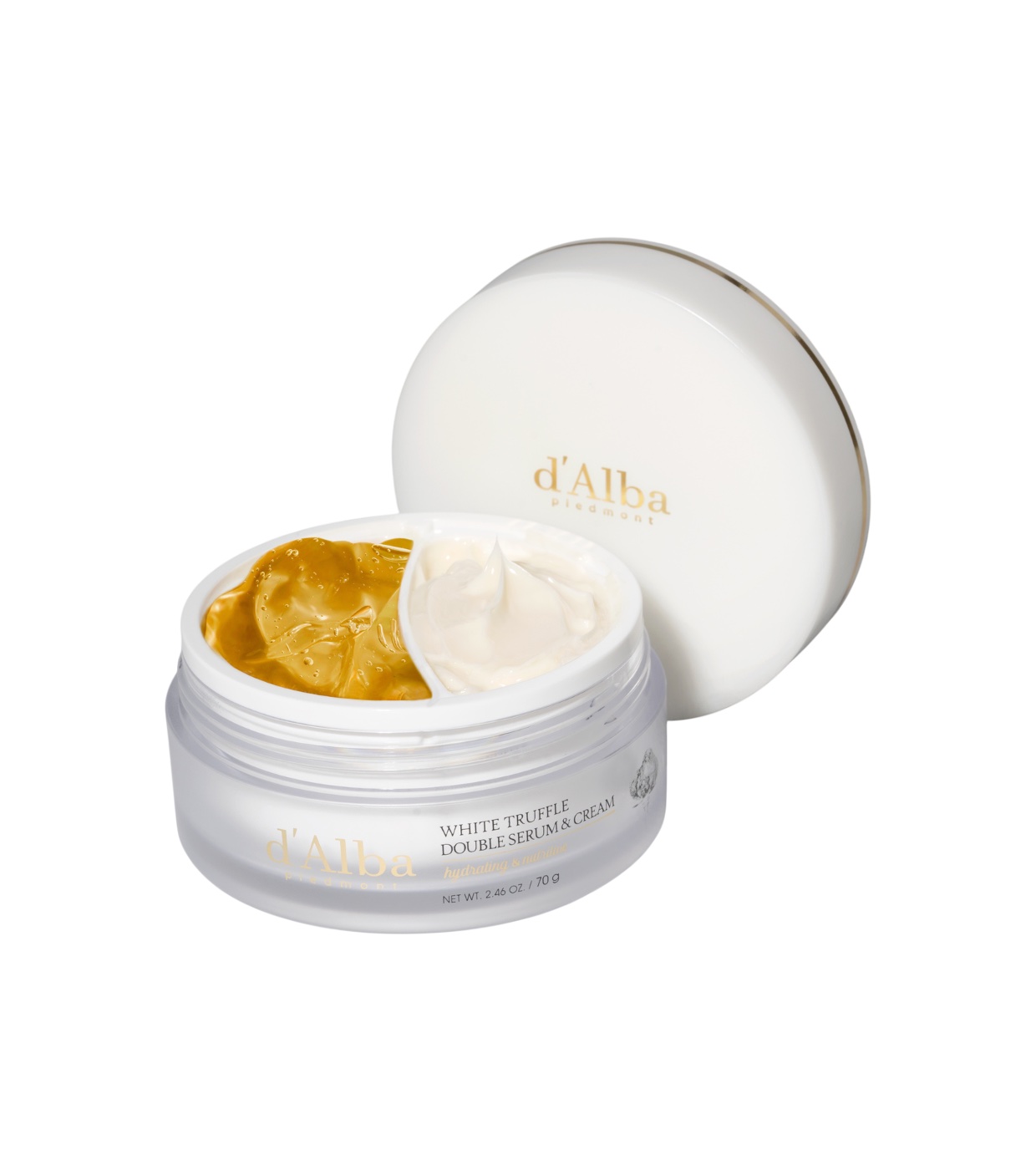 O Sérum e Creme Facial 2 em 1 D'Alba White Truffle foi desenvolvido para se adaptar às necessidades mutáveis da pele, combinando duas fórmulas altamente eficazes: Aqua Serum e Intense Cream.