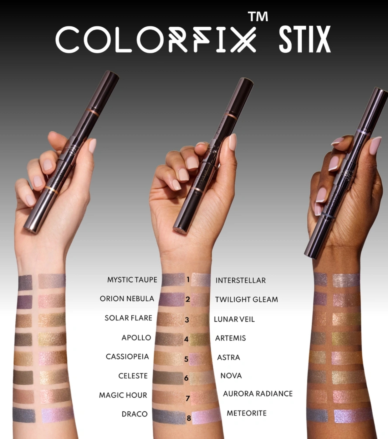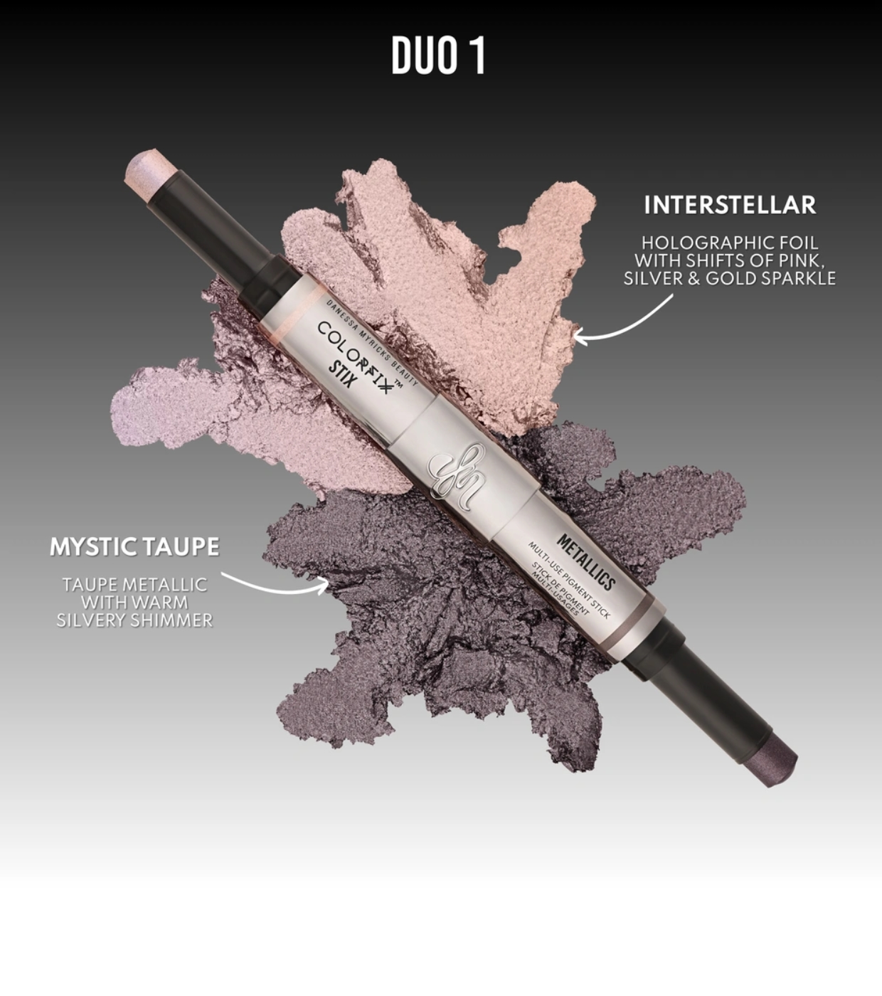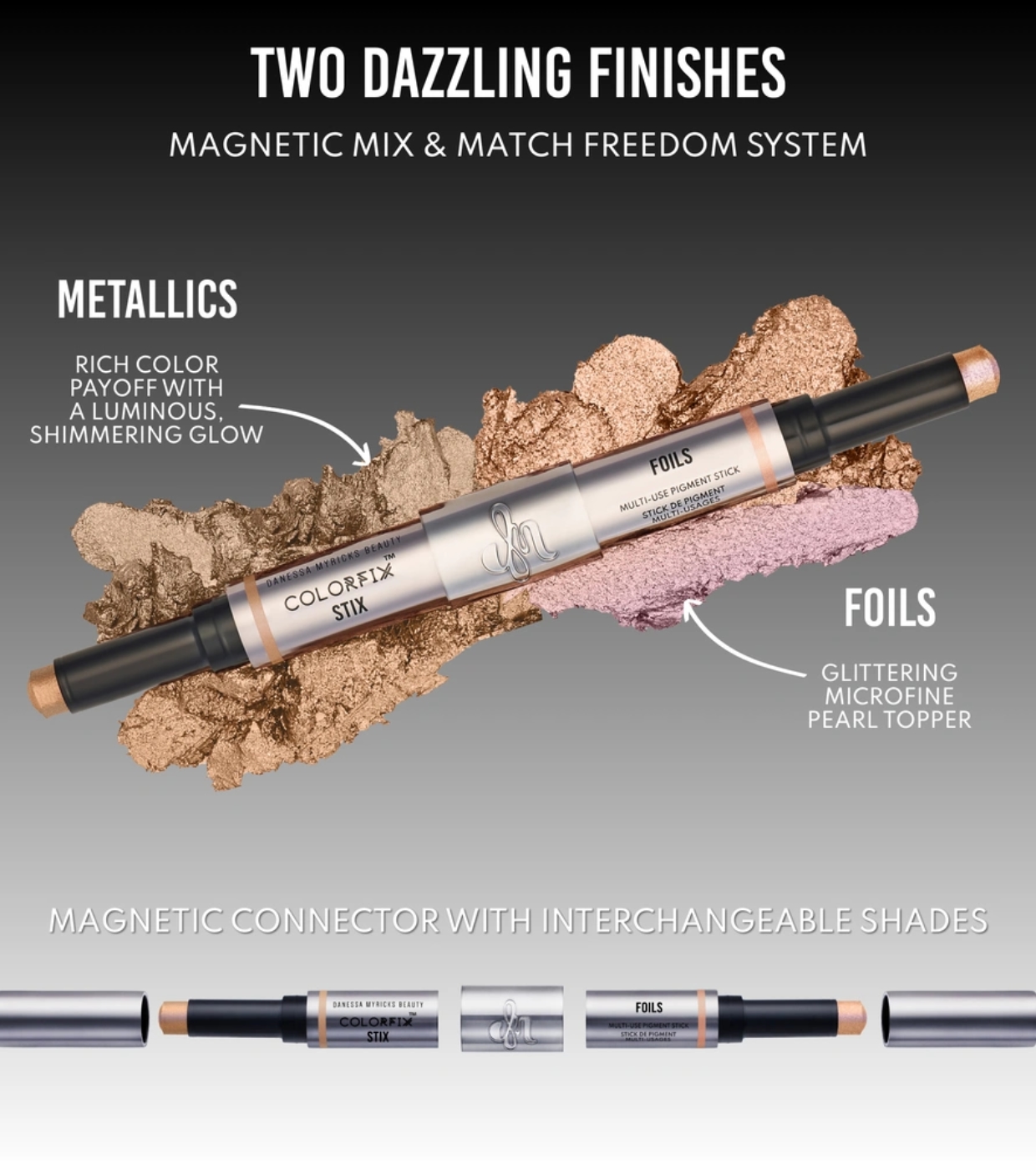 Descubra o Colorfix Stick Duo da Danessa Myricks com textura perolada e efeito refrescante ao contato, perfeito para aplicar nos olhos, bochechas e lábios.
