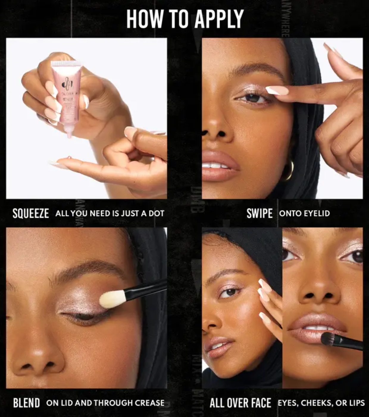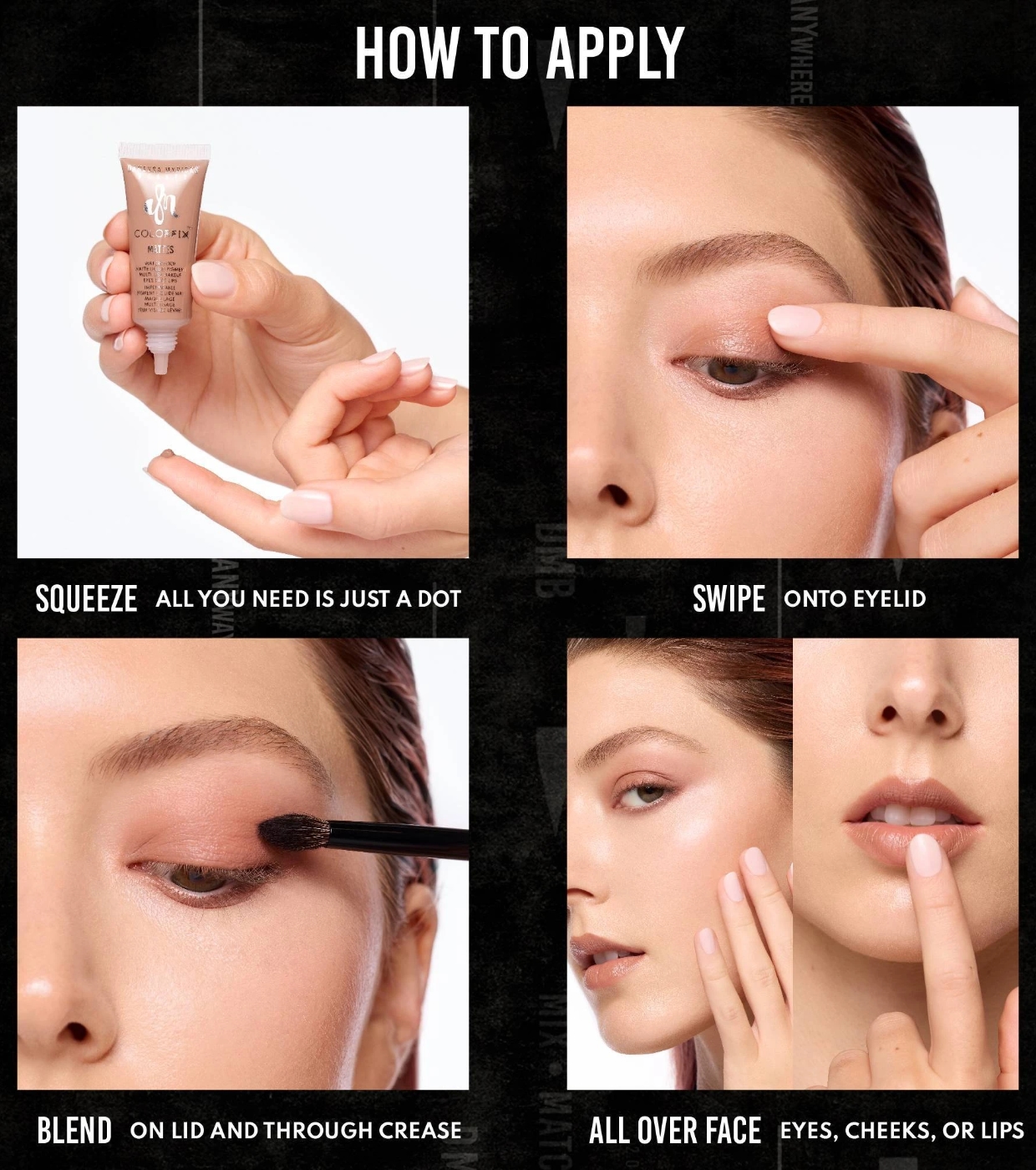 Uma sombra em creme super versátil com uma fórmula de longa duração única no mercado que também pode ser usada com segurança nos lábios, ao redor dos olhos ou no rosto.