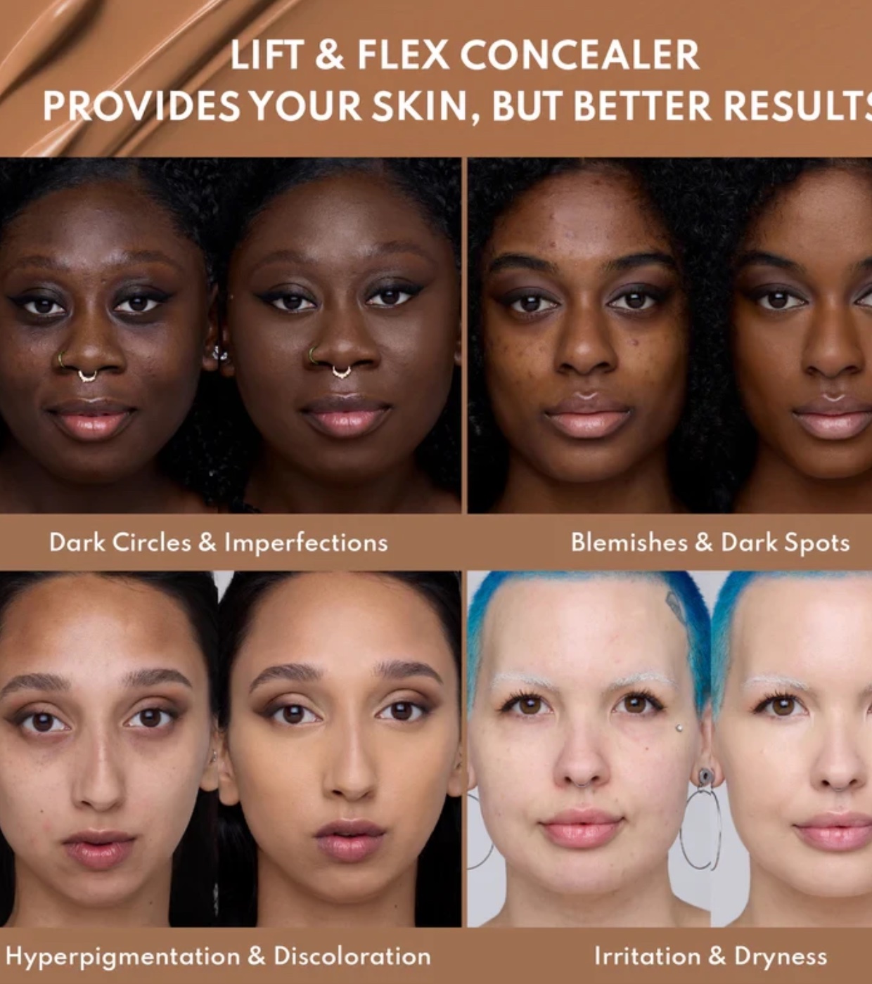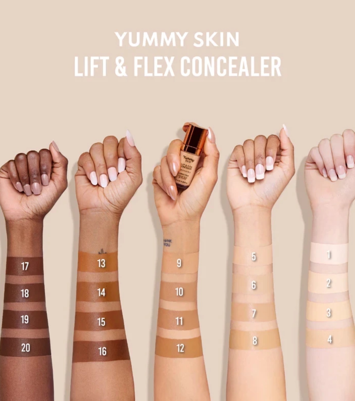 A gama de tonalidades do Lift and Flex Concealer é flexível e se adapta a qualquer tom de pele, atendendo a diversas necessidades de correção.