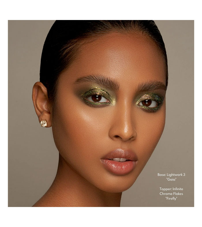 Os Infinite Chrome Flakes são flakes com acabamento hipermetálico multicromático ideal para iluminar e dar um tom incrível a qualquer look.